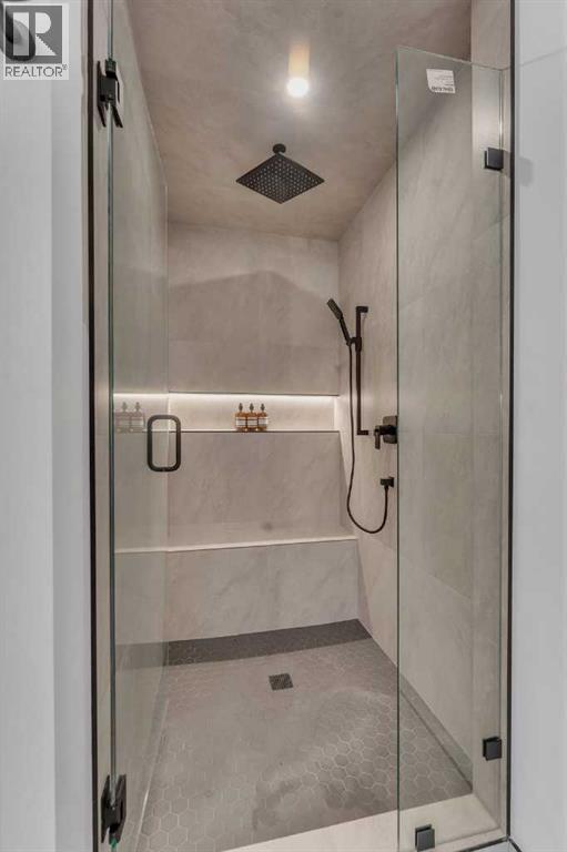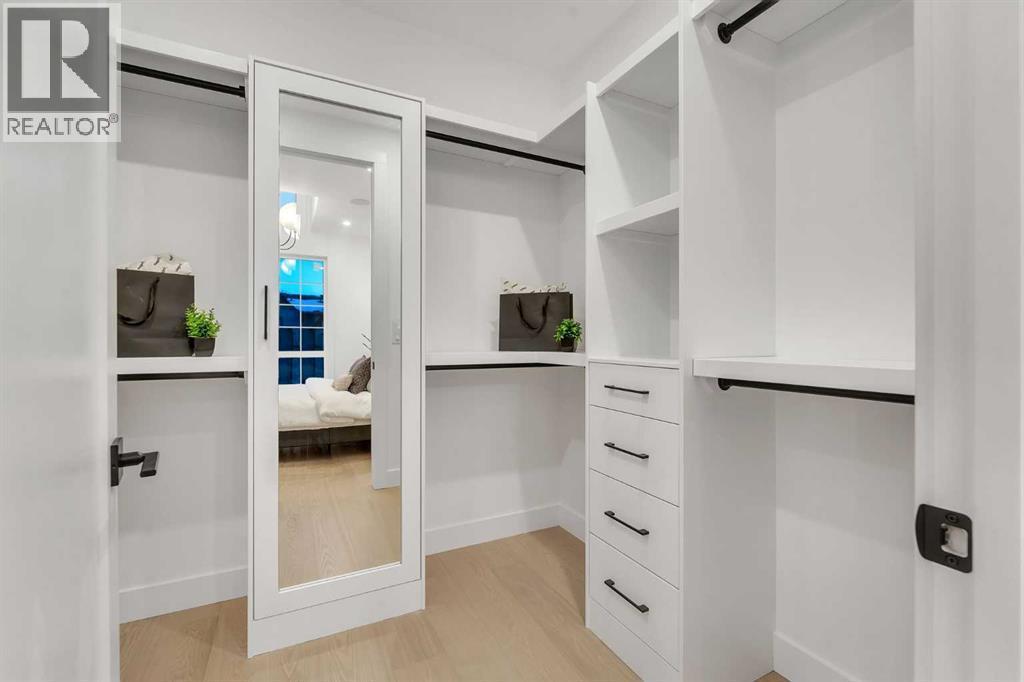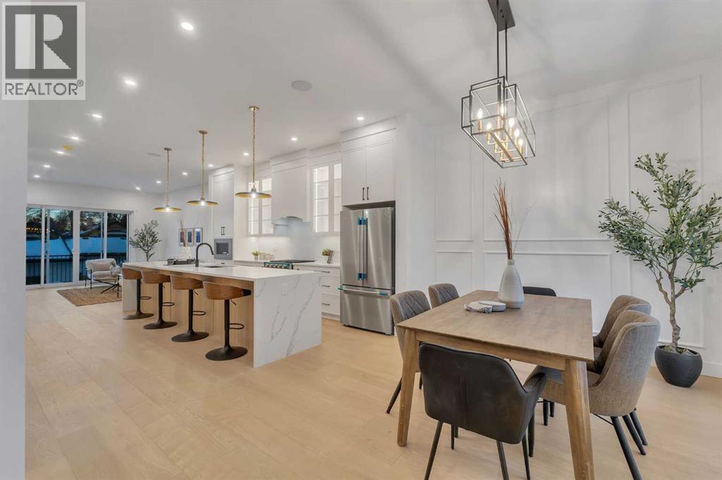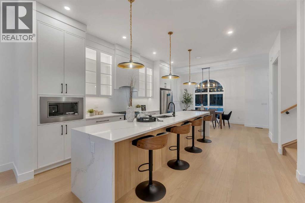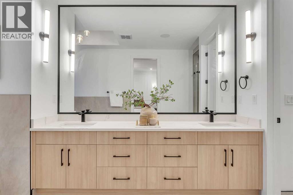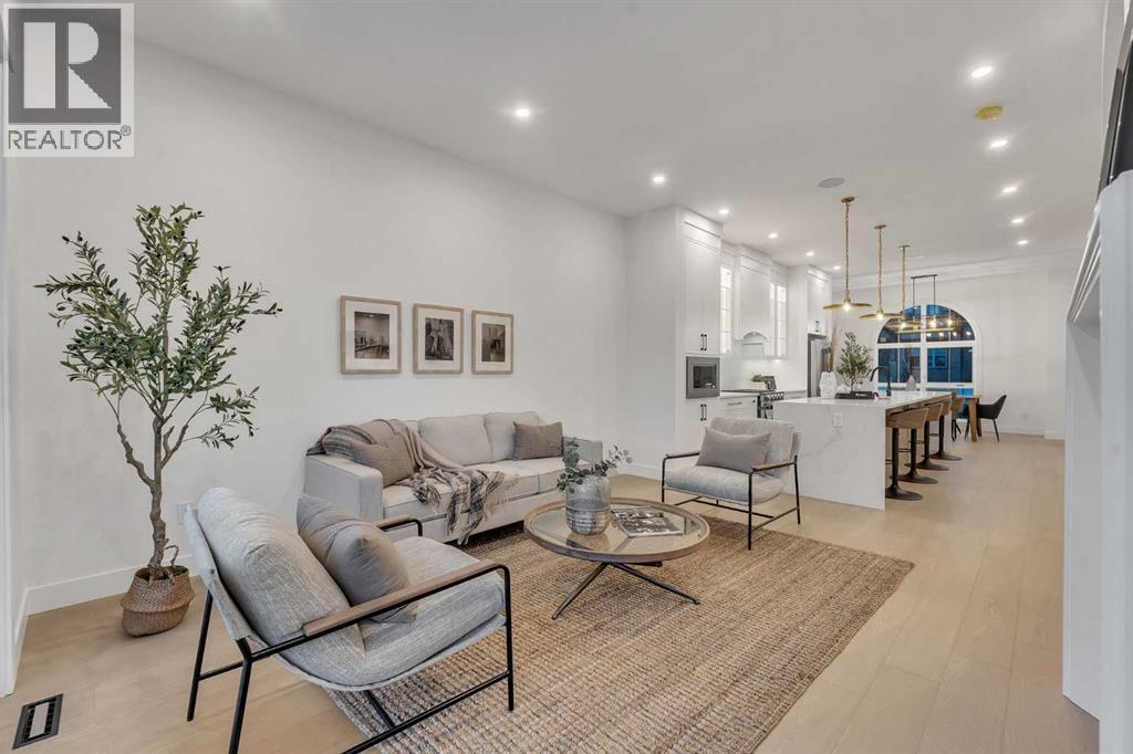 **FREE A/C INSTALLED IF THE SALE IS FIRM BEFORE MARCH 16TH** IMMEDIATE POSSESSION AVAILABLE | 4 BEDROOMS | 3.5 BATHROOMS | WALK-OUT BASEMENT WITH GYM, REC ROOM & WET BAR | SUNNY SOUTH FACING BACKYARD WITH DOWNTOWN VIEWS | Welcome to this brand-new, move-in ready infill that perfectly blends modern sophistication with smart, functional design and an open concept layout. This home has been thoughtfully curated with high-end finishes, tons of natural light, and a layout that combines luxury with practicality. Stepping inside, you're greeted with soaring 10-foot ceilings and expansive windows bringing in an array of natural light. The open-concept main floor flows seamlessly, starting with a welcoming foyer featuring custom built-in cabinetry and a bench - offering convenience, storage, and a stylish first impression. The dining area, bathed in sunlight, sets the tone for everything from casual family dinners to elegant hosting. Just steps away from the dining area - the gourmet kitchen is a true centrepiece and a chef's dream. The kitchen boasts floor-to-ceiling custom cabinetry, quartz countertops, LED under-cabinet and built-in lighting, and top-tier KitchenAid stainless steel appliances. A striking and expansive waterfall island anchors the space - perfect for prepping meals, morning coffees, evening cocktails, or just to get some work done. Extras like a built-in pantry with custom cabinetry, tiled coffee station, and floating shelves with integrated lighting elevate both form and function. Just off the kitchen, you have your own private home office offering a custom glass door and providing a quiet retreat for remote work or study. The spacious living room features a stunning tiled fireplace and oversized double sliding glass patio doors that extend your living space outdoors to the backyard patio offering downtown views - ideal for summer entertaining, morning coffees, or quiet evenings. A well-designed mudroom with built-in cabinets provides additional storage s pace and helps keep daily essentials organized. A chic powder room with a quartz vanity, designer fixtures, LED under lighting, and stunning wallpaper adds a refined touch to the main floor. Upstairs, the primary suite is a showstopper. Custom detailing, an expansive walk-in closet, and a spa-inspired ensuite with IN-FLOOR HEATING, a quartz double vanity, LED accent lighting, backlit mirror, free-standing tub, and oversized glass shower make this a true retreat. Two additional bedrooms, each with their own spacious walk-in closets, provide cozy, private spaces and share a beautifully appointed four-piece bathroom. A dedicated laundry room with custom cabinetry, quartz countertops, and a sink finish off this masterful upper level. The fully finished WALK-OUT basement is thoughtfully designed and features an additional bedroom, four-piece bathroom, gym/exercise area, a wet bar, and recreation area perfect for additional living space. (id:6769