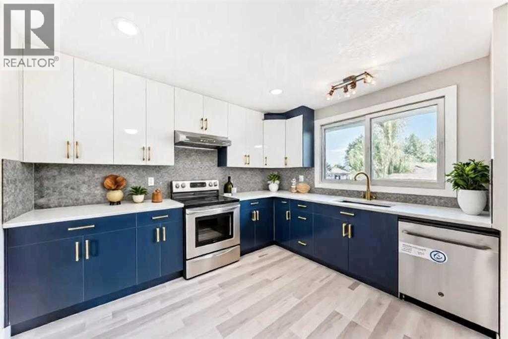 Looking for a renovated move-in-ready home in an desirable Calgary Lake Community like Lake Midnapore under $670,000 with lake privileges, a brand new double garage, and walking distance to Fish Creek Park? 15104 1 Street SE offers over 1,950 sq ft of updated living space in a quiet southeast Calgary location close to the C Train.Welcome to 15104 1 Street SE, a beautifully renovated 4 level split in the established lake community of Midnapore, now priced at $669,900. This move in ready home features 5 bedrooms and 2 fully updated bathrooms across four functional levels. The main floor is bright and open with luxury vinyl plank flooring, modern lighting, and a stunning kitchen complete with quartz countertops, high gloss white upper cabinetry, royal blue matte lower cabinets, stainless steel appliances, tiled backsplash, and custom pantry storage. Upstairs you will find three bedrooms including a spacious primary suite with walk in closet and renovated 4 piece bath. The third level offers a large family room with electric fireplace feature wall, a fourth bedroom, and a 3 piece bathroom. The basement includes a fifth bedroom with egress window plus a generous laundry and utility space. Major updates include new triple pane windows, new roof, new eaves and gutters, new doors, fresh interior and exterior paint, updated plumbing, and a high efficiency furnace. Outside, enjoy a landscaped yard, new fencing, a two tier deck, and a brand new double detached garage. Located just a 5 minute walk to Fish Creek Provincial Park, close to schools, shopping, C Train access, and with full lake privileges at Midnapore Lake, this home delivers space, upgrades, and lifestyle in one of Calgary’s most established communities. (Some photos are virtually staged with expert AI tools for your convenience and furniture reference) Call for more info or to book your private showing today! (id:6769