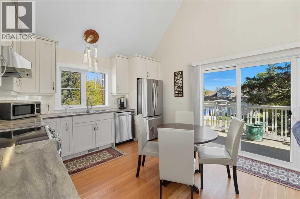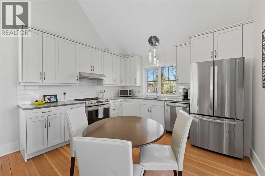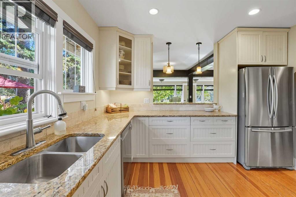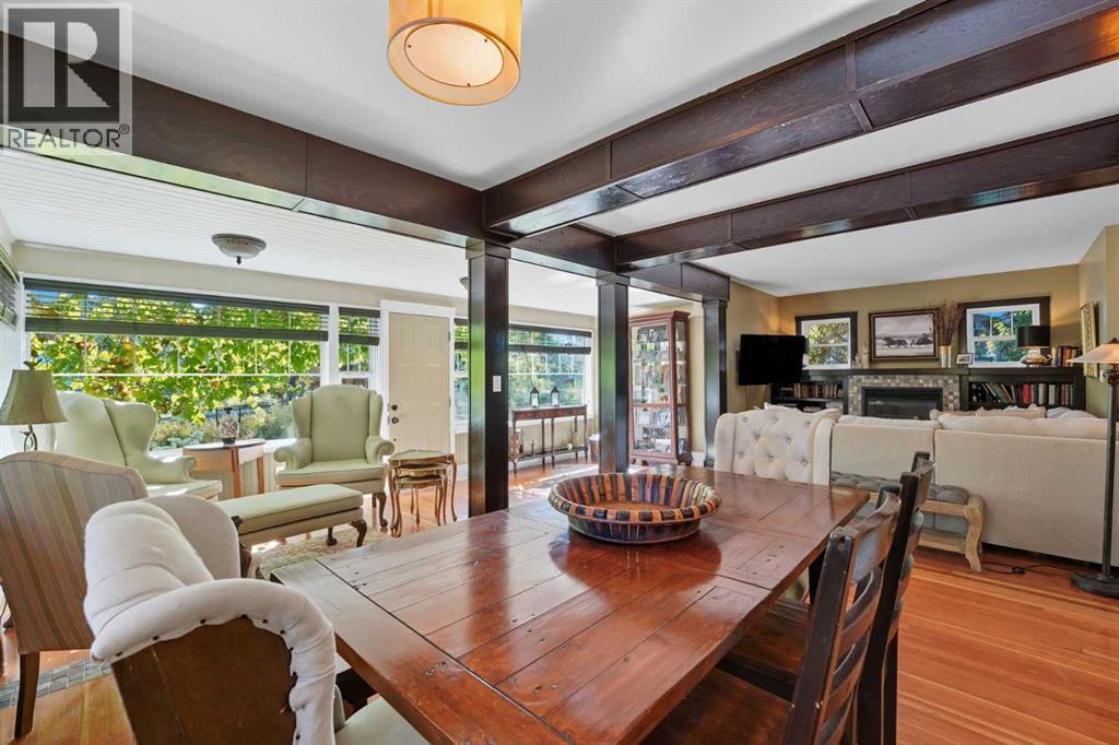Welcome to one of High River’s most iconic homes-a timeless 1940 Craftsman-style beauty nestled on a rare double corner lot. Just a short stroll from the charming downtown, this heritage property has been THOUGHTFULLY & EXTENSIVELY RENOVATED, with a substantial addition completed in 2021 that blends seamlessly with the original architecture. With OVER 4,100 SQ FT OF DEVELOPED LIVING SPACE, this home offers the perfect balance of historic character & modern comfort. At the heart of the home, you’ll find a custom-designed kitchen surrounded by rich millwork, exposed brick, & sun-filled living spaces. The cozy living room, complete with a gas fireplace & period-inspired detailing, invites you to unwind & enjoy the character that only a home of this vintage can offer. One of the most remarkable features of the addition is the use of 120 year-old Douglas Fir hardwood flooring, sourced to blend perfectly with the original hardwood-a detail that speaks to the exceptional craftsmanship & care taken in every element of this renovation. The home features 3 bedrooms and 4.5 beautifully finished bathrooms. The primary bedroom is a true retreat, offering peaceful views & convenient access to the back of the property. The ensuite is luxurious & functional, with heated tile floors, a double vanity & a large tiled walk-in shower. Off the generous walk-in closet, you'll find a conveniently located laundry area. A standout feature is the expansive loft space, with soaring vaulted ceilings, offering endless potential—whether used as additional bedrooms, a home office, or private gym. The fully developed basement includes another inviting living area, a wet bar for entertaining, a second gas fireplace, & ample room to relax or host guests. NOTABLE UPGRADES: ALL NEW PLUMBING, ELECTRICAL, WINDOWS, INSULATION, ROOF, FURNACES AND HOT WATER TANKS. Outside, the property truly shines. Mature trees, lush gardens, & curated landscaping create a sense of privacy & peace, like your own private pa rk. A heated koi pond adds a tranquil touch & the wrap around covered porch provides the perfect place to sit & enjoy the surrounding beauty.The saltwater hot tub provides a luxurious way to unwind, while the whimsical “She Shed” in the garden offers a quiet retreat. The stunning legal carriage suite is located above the TRIPLE detached garage. Just under 700 sq ft, cathedral ceilings, a full bathroom, huge balcony, & oversized windows that flood the space with light, this one-bedroom legal suite feels like a peaceful sanctuary-ideal for guests, extended family, or tenants. Schools & the hospital are nearby, making this home as practical as it is picturesque. Whether you're seeking a quiet lifestyle, small-town charm, space to grow, or a truly unique & character-rich place, this home offers something extraordinarily special. (id:6769