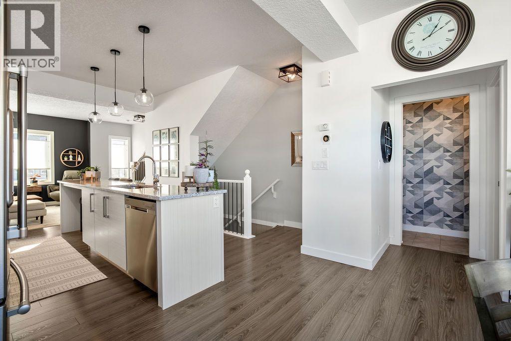 Welcome to this beautifully updated END UNIT townhouse offering thoughtful upgrades, abundant natural light, and is presented in incredible condition. With high ceilings and large windows throughout, this home feels bright and welcoming from the moment you step inside.The entry level offers flexibility with space ideal for a home office, reading room or home gym, along with a convenient storage room and access to your attached garage.The open-concept main living area is designed for both everyday comfort and entertaining. The kitchen features ungraded appliances including a gas stove, generous cabinetry, and a spacious island that flows seamlessly into the dining and living areas. Thanks to the home’s end-unit position and elevated sightlines, natural light pours in, creating an inviting atmosphere throughout the day.Upstairs, you’ll find 3 well-proportioned bedrooms, including a primary retreat complete with a three-piece ensuite and walk in closet. A four-piece main bathroom serves the additional bedrooms, making this layout ideal for families, guests, or shared living.Additional highlights includes AIR CONDITIONING, and a HEATED GARAGE with enough space for storing your toys as well as additional storage under the stairs. This home also offers extra parking available on the driveway—an added bonus rarely found in condo living. The end-unit location provides enhanced privacy and a quieter setting, while still offering easy access to nearby amenities and outdoor spaces. Fresh paint, custom feature walls, and new up-down blinds enhance the modern feel while allowing you to control light with ease. A move-in-ready home with modern updates, functional living spaces, and standout features—this end unit offers comfort, convenience, and value. Enjoy the walking/running paths right outside your doorstep to the beautiful Bow River Pathways. Schools and shopping are close by and the access both out of Cochrane and into downtown is now simpler than ever. (id:6769