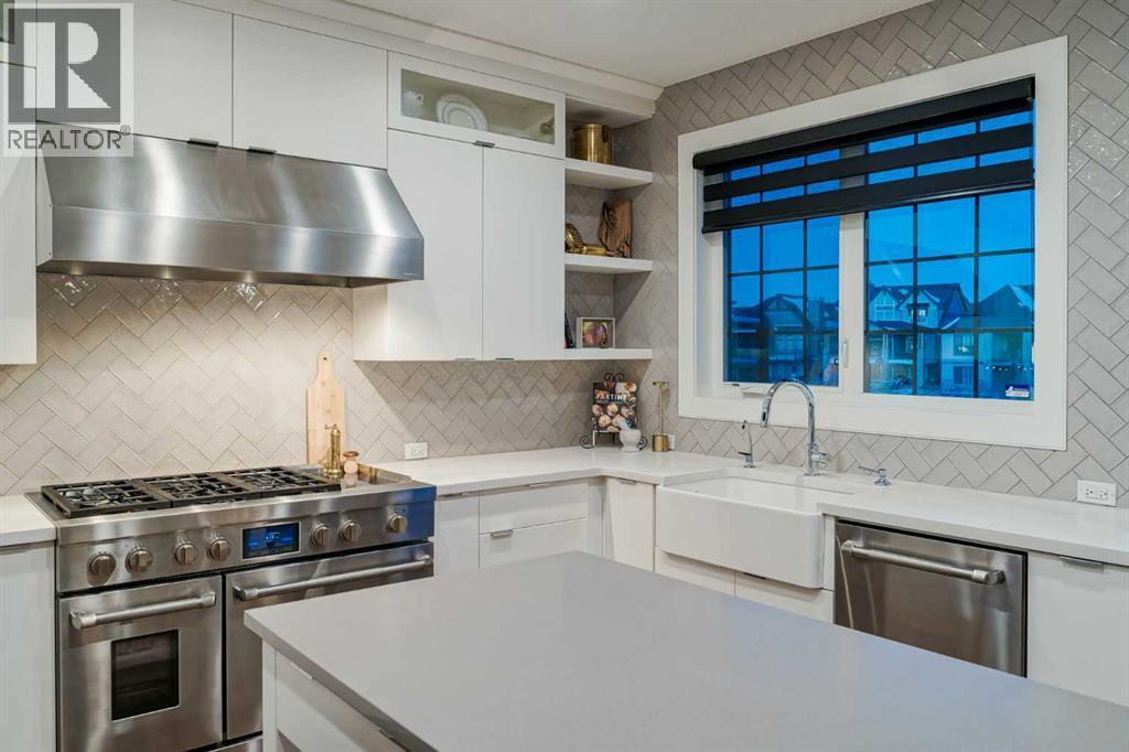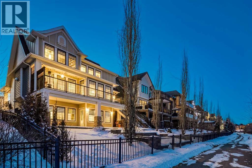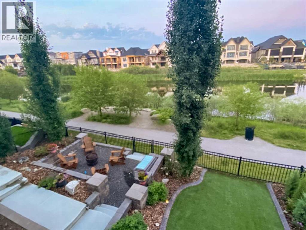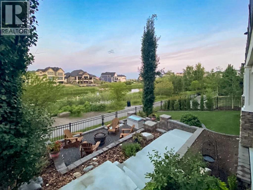 **OPEN HOUSE SUN MAR 14th 2PM - 4PM** Welcome to this exceptional McKee-built custom home in the prestigious community of Coopers Crossing, where refined craftsmanship meets unobstructed pond-side living. Offering over 3,700 sqft of professionally developed living space, this fully finished 4-bedroom, 3.5-bathroom walk-out home delivers an elevated lifestyle defined by architectural detail and premium upgrades. From the moment you arrive, the curb appeal is undeniable - an exposed aggregate driveway, covered front porch with cedar soffit detailing, and a fully landscaped lot create a strong first impression. The 708 sqft triple tandem heated garage is both functional and impressive, complete with overhead storage and room for vehicles, toys, or workshop space. Inside, a dramatic open-rise staircase anchors the main level, while engineered hardwood flooring flows throughout. The great room is designed for both everyday living and upscale entertaining, featuring a custom fireplace surround with built-ins and expansive windows framing tranquil pond views. The chef-inspired kitchen is a true showpiece. Thoughtfully upgraded with crisp white cabinetry, double islands, and premium stainless steel appliances, it includes a 48” Jenn-Air dual-fuel gas range, Vent-A-Hood range hood, and Electrolux side-by-side refrigerator/freezer. An exquisite under mount sink and refined finishes complete this elevated culinary space. From this level, step outside to your private backyard oasis: a full-width 33’4” x 9’8” composite deck with stairs leading to professionally designed stone scaping, low-maintenance turf, and a dedicated firepit and patio area (15’4” x 10’4”). Upstairs, vaulted ceilings and two skylights flood the bonus room, primary suite, ensuite, and laundry room with natural light. The primary retreat offers serene water views and a spa-inspired ensuite designed for relaxation. Three additional bedrooms complete the upper level, including one with a charming Juliet balcony. The fully developed walk-out basement extends the living space seamlessly outdoors and features a wet bar, spacious recreation area, hobby room, and additional storage. Morning coffees overlooking the water in summer. Skating on the pond in winter. This is a home designed to be experienced in every season. Additional highlights include upper-level exterior pot lights, custom built-ins throughout, security camera system and panel, pre-wired in-ceiling speakers with two Sonos bridges, dual furnaces plus A/C. Rarely do homes combine this level of finish, functionality, and uninterrupted pond views in one of Airdrie’s most sought-after communities. This is luxury living - without compromise. (id:6769
