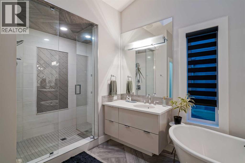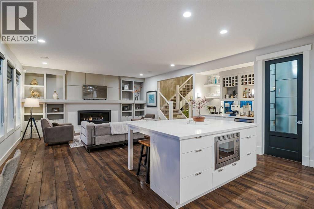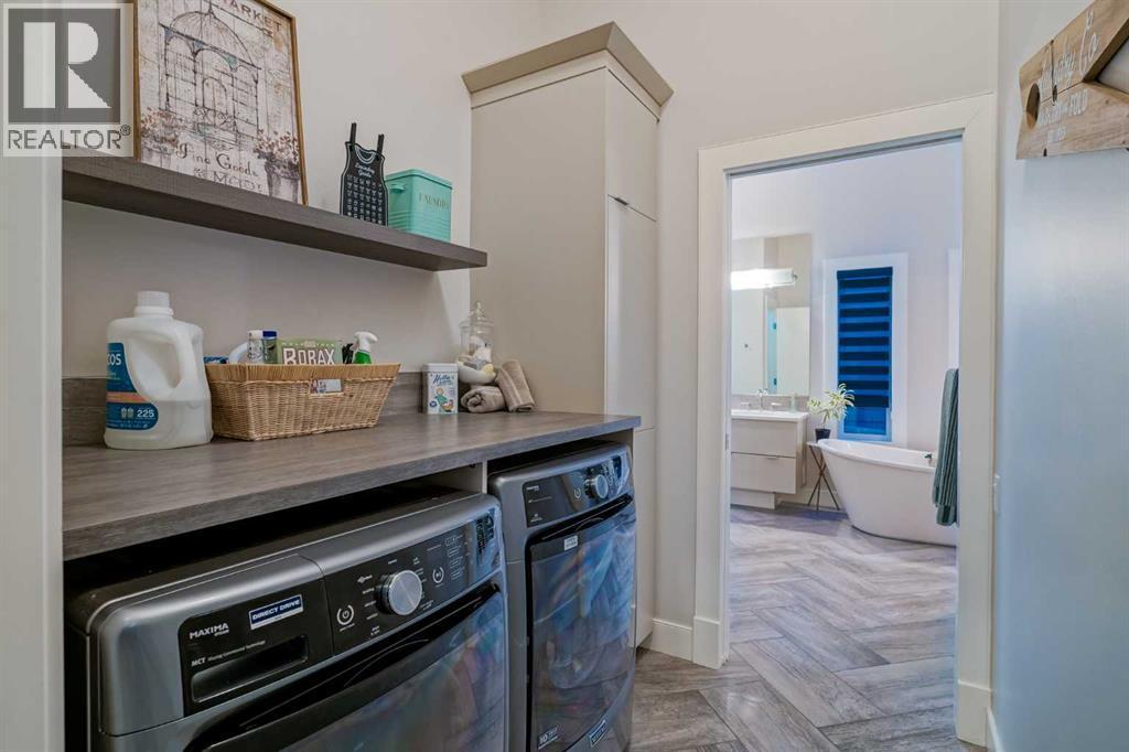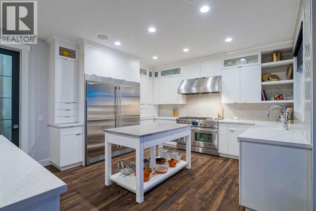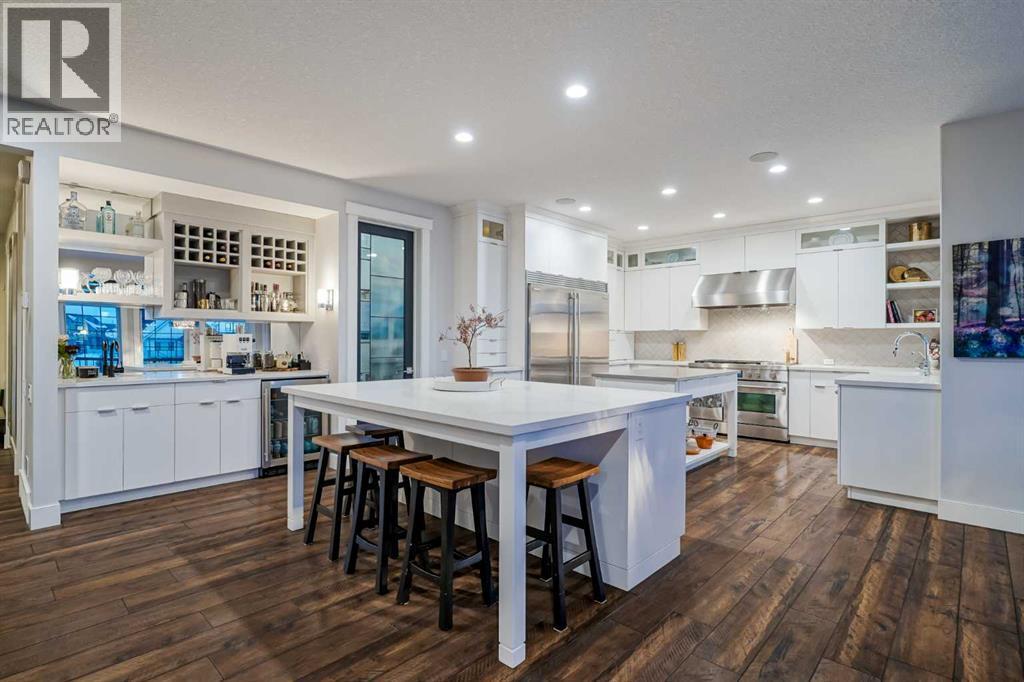 **OPEN HOUSE SUN MAR 14th 2PM - 4PM** Welcome to this exceptional McKee-built custom home in the prestigious community of Coopers Crossing, where refined craftsmanship meets unobstructed pond-side living. Offering over 3,700 sqft of professionally developed living space, this fully finished 4-bedroom, 3.5-bathroom walk-out home delivers an elevated lifestyle defined by architectural detail and premium upgrades. From the moment you arrive, the curb appeal is undeniable - an exposed aggregate driveway, covered front porch with cedar soffit detailing, and a fully landscaped lot create a strong first impression. The 708 sqft triple tandem heated garage is both functional and impressive, complete with overhead storage and room for vehicles, toys, or workshop space. Inside, a dramatic open-rise staircase anchors the main level, while engineered hardwood flooring flows throughout. The great room is designed for both everyday living and upscale entertaining, featuring a custom fireplace surround with built-ins and expansive windows framing tranquil pond views. The chef-inspired kitchen is a true showpiece. Thoughtfully upgraded with crisp white cabinetry, double islands, and premium stainless steel appliances, it includes a 48” Jenn-Air dual-fuel gas range, Vent-A-Hood range hood, and Electrolux side-by-side refrigerator/freezer. An exquisite under mount sink and refined finishes complete this elevated culinary space. From this level, step outside to your private backyard oasis: a full-width 33’4” x 9’8” composite deck with stairs leading to professionally designed stone scaping, low-maintenance turf, and a dedicated firepit and patio area (15’4” x 10’4”). Upstairs, vaulted ceilings and two skylights flood the bonus room, primary suite, ensuite, and laundry room with natural light. The primary retreat offers serene water views and a spa-inspired ensuite designed for relaxation. Three additional bedrooms complete the upper level, including one with a charming Juliet balcony. The fully developed walk-out basement extends the living space seamlessly outdoors and features a wet bar, spacious recreation area, hobby room, and additional storage. Morning coffees overlooking the water in summer. Skating on the pond in winter. This is a home designed to be experienced in every season. Additional highlights include upper-level exterior pot lights, custom built-ins throughout, security camera system and panel, pre-wired in-ceiling speakers with two Sonos bridges, dual furnaces plus A/C. Rarely do homes combine this level of finish, functionality, and uninterrupted pond views in one of Airdrie’s most sought-after communities. This is luxury living - without compromise. (id:6769