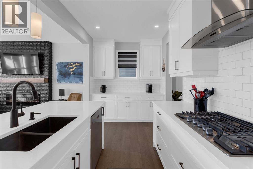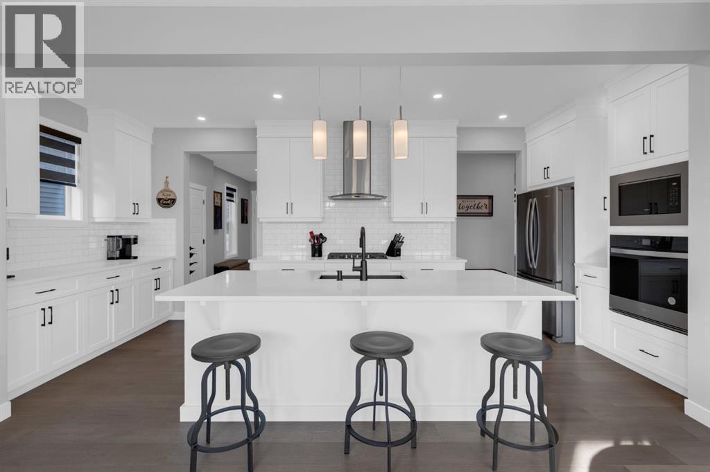 OPEN HOUSE, Sunday March 15th, 2-4pm. Welcome to this EXCEPTIONALLY UPGRADED detached home in the desirable, LUXURY neighbourhood of PRECEDENCE, where picturesque views & architecture meet everyday convenience and stunning NATURAL SURROUNDINGS! With over $110k in UPGRADES INSIDE & OUT, step inside to discover thoughtful enhancements that set this, 2484 sq ft (above grade), home far apart from typical spec-built homes. The main floor impresses with a grand entrance including a handy HOME OFFICE/DEN space enclosed with barn sliding doors, a large closet, and a perfectly tucked-away half bath. ENGINEERED HARDWOOD leads throughout the open-concept main level with 9 FT CEILINGS and an abundance of NATURAL LIGHT! Custom blinds encompass the many large windows throughout the home. The beautiful feature FIREPLACE is definitely the focal point in the family-friendly GREAT ROOM! The GOURMET KITCHEN shines with built-in stainless steel appliances including a GAS COOKTOP, full-height cabinetry, QUARTZ counters, under-cabinet lighting, and a SIL GRANITE sink! There's no shortage of storage, with the added bonus of a custom COFFEE/WINE/SERVING BAR that also provides extra cabinets—perfect for hosting & entertaining! A generous WALK-IN PANTRY and large mudroom with another large closet complete the main level. Upstairs greets you with wide-open spaces: a large BONUS ROOM, 2 SECONDARY BEDROOMS both with walk-in closets, a large 4-piece bathroom with full height tiled tub surround, and even an extra bonus space perfect for a reading nook, tech area, or play room! The master retreat does not disappoint—easily fits king-sized furniture—and has a spa-like 5-PIECE ENSUITE including a FULLY TILED 10 MIL GLASS SHOWER with bench, large soaker tub, and HIS & HER VANITIES. A large walk-in/walk-thru closet provides easy accessibility to the laundry room as well! Outside is a MAINTENANCE-FREE PARADISE: professionally landscaped with 3 DECKS, ARTIFICIAL TURF, and a concrete block patio complete with WOOD-BURNING FIRE PIT and wood shed! The 9 FT WALK-OUT BASEMENT includes 4 LARGE WINDOWS (3 egress), bathroom rough-in, and almost 1000 SQ FT of endless possibilities for future development! AIR CONDITIONING, DUAL CLIMATE ZONE CONTROL, as well as a TANKLESS WATER HEATER and a 4400 WATT 10-PANEL SOLAR PANEL SYSTEM (estimated 5,515 kWh/year production - $15K system), were added reducing energy costs and increasing comfort, all while supporting eco-friendly living. The sellers cherish the home's close proximity to the ridge/river pathways, the SLS rec centre, and shopping. Highway access is quick & easy too! Beautiful quiet community, stunning river/town views, prime location & smart upgrades make this home more than just a property—it's a lifestyle and a place to build memories, entertain effortlessly, and enjoy modern comfort! Ideal for growing families or those seeking quality without compromise. Schedule your private showing today and see why this Cochrane gem stands out! (id:6769