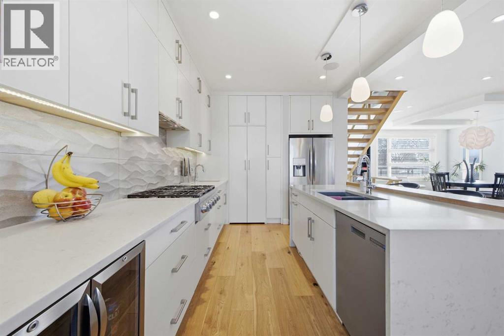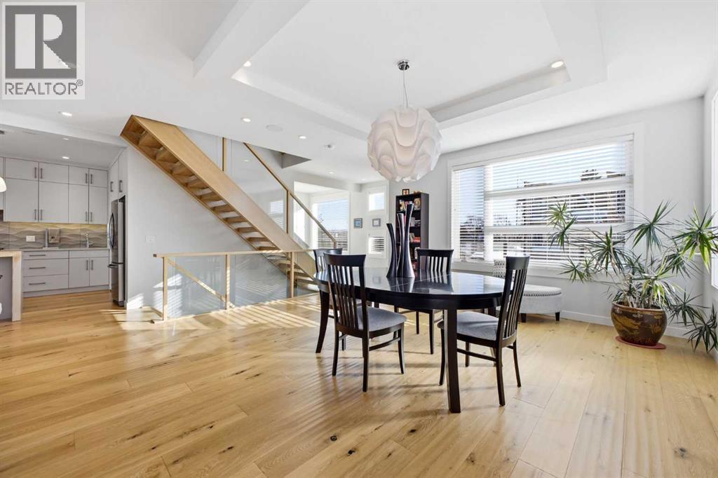 OPEN HOUSE SATURDAY, MARCH 14TH FROM NOON - 2 PM & SUNDAY, MARCH 15TH FROM 2-4 PM. PANORAMIC CITY AND DOWNTOWN VIEWS define this contemporary 4 bedroom residence in historic Bridgeland, offering over 4,600 sq ft of beautifully designed living space, including a fully developed walk out basement. Thoughtfully crafted for both everyday comfort and elevated entertaining, the home blends modern finishes with exceptional functionality. The open, airy main level features hardwood floors and soaring ceilings. A spacious dining area easily accommodates large gatherings, while the living room—anchored by a remote controlled feature fireplace—creates a warm, inviting focal point. The kitchen is tastefully appointed with quartz countertops, an island with eating bar, abundant cabinetry including a walk in pantry, stainless steel appliances, and a bright breakfast nook. A mudroom and 2 piece powder room complete this level. The second floor hosts three well proportioned bedrooms, a 5 piece bath, and a laundry room equipped with a sink and storage. The private primary retreat enjoys its own balcony, a generous walk in closet, and a secluded 5 piece ensuite featuring in-floor heat, dual sinks, a relaxing soaker tub, and an oversized shower. The third level is an exceptional entertaining space, offering a large loft with in-floor heat, wet bar and access to a spectacular rooftop patio showcasing sweeping skyline views. A fourth bedroom and a 3 piece bath with rejuvenating steam shower complete this upper level. The fully developed walk out basement, warmed with in floor heat, includes a spacious recreation/media room with wet bar, a dedicated office, and a 3 piece bath. Additional highlights include new hardwood flooring in the loft and bedrooms, built in speakers, a south facing front patio, and a private backyard with deck, swim spa, and access to the heated triple detached garage. This exceptional property enjoys an enviable location close to Bridgeland’s charming shops, cafés, and restaurants, the Calgary Zoo, Bow River pathways, schools, public transit, and offers effortless access to the downtown core. (id:6769