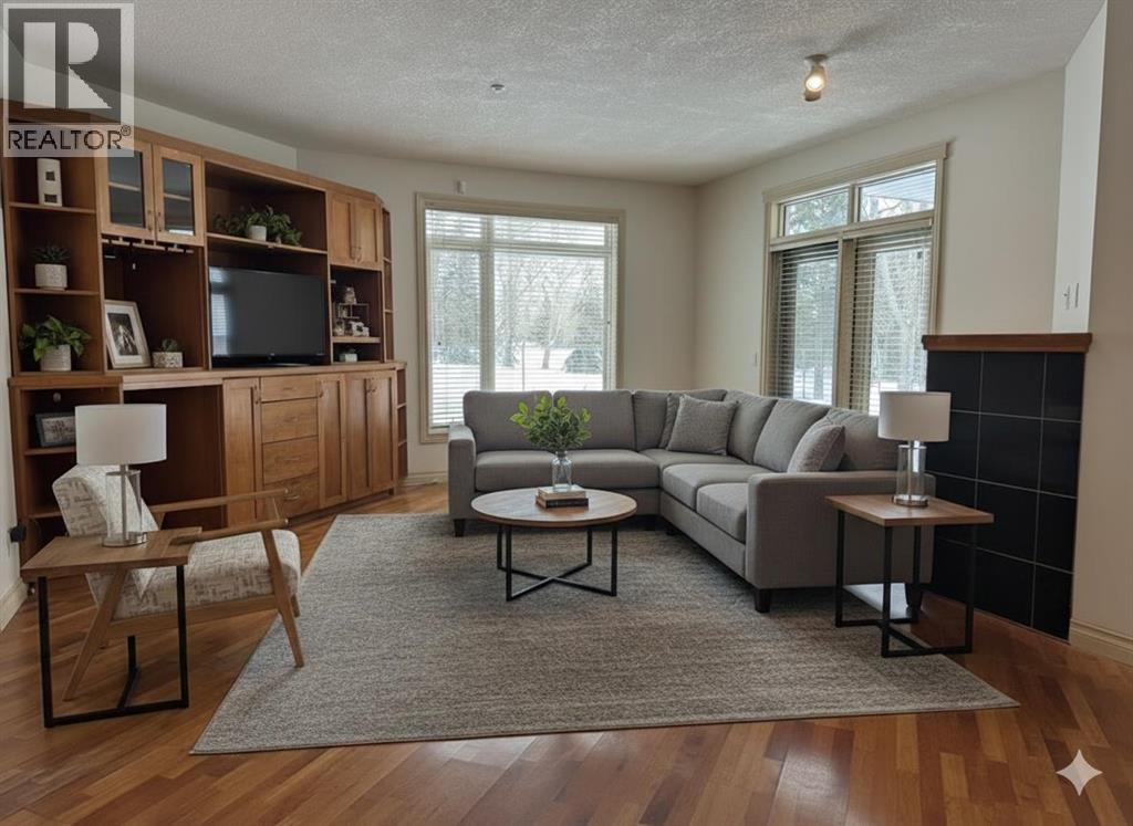 Situated within the sought-after Copperwood complex of Spruce Cliff, this main-level residence offers nearly 1,500 square feet of refined living space backing directly onto the Shaganappi Point Golf Course. The open-concept layout is defined by high ceilings and large windows that provide a bright, airy atmosphere, with hardwood flooring flowing through the great room and dining area. The living space is anchored by a gas fireplace and custom built-ins, offering a warm and inviting focal point. Just off the dining area, a private den is accessed through elegant glass French doors, providing a quiet and versatile space for a home office or library. The kitchen is designed for both style and function, featuring solid-surface countertops, stainless steel appliances, and a pantry complete with a built-in spice rack for optimized storage. The primary suite serves as a quiet retreat with ample space for a king-sized bed, a walk-in closet, and a five-piece ensuite with a soaking tub and separate shower. A generous second bedroom is complemented by a main bathroom featuring a walk-in steam shower, offering a spa-like experience at home. For added convenience, the residence includes a functional laundry room with a stacking washer and dryer and enough additional space for organized storage. This home also includes two underground parking stalls and a dedicated storage locker. Residents of Copperwood enjoy access to the Copper Club, which features a well-equipped gym, meeting room, and social lounge, along with an available guest suite for visitors. Located just minutes from downtown Calgary via Bow Trail, the property offers easy access to public transportation and the various amenities of Westbrook Mall, including Safeway and Starbucks. This home represents a refined lifestyle choice, blending the serenity of golf course views with the convenience of an established urban community. (id:6769