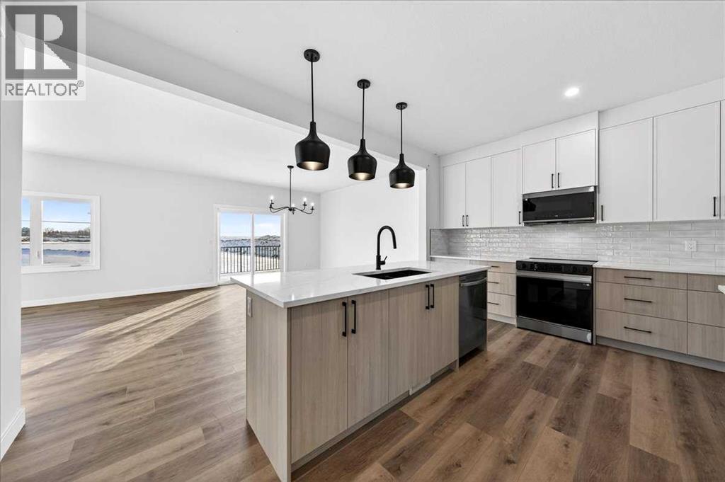 Welcome to a stunning, beautiful two-storey home offering over 2,300 sq ft of above-grade living space, perfectly situated on a huge corner lot. This impressive home features a bright and open floor plan with soaring high ceilings and an “open to below” design that fills the space with natural light and creates a grand first impression. The spacious living room is anchored by a modern electric fireplace, making it the perfect gathering space for family and friends. The chef-inspired kitchen offers ample cabinetry, a large pantry, and seamless flow into the dining area — ideal for entertaining. Step outside to enjoy peaceful views from your balcony overlooking the tranquil water feature. A rare and highly desirable main floor bedroom provides flexibility for guests, extended family, or a home office. The main level is completed with a convenient 2-piece bath and mudroom access to the oversized double garage. Upstairs, you will find a generous bonus/family room, upper-floor laundry, and three spacious bedrooms including a luxurious primary retreat featuring a walk-in closet and a 5-piece ensuite. The open-to-below design continues upstairs, enhancing the home’s bright and airy feel. Exterior highlights include durable stucco siding, excellent curb appeal, and the added privacy and space that only a corner lot can provide. This exceptional walkout home combines space, functionality, and scenic views - a rare opportunity in a fantastic location. Don’t miss your chance to own this beautiful property! Book your private tour today! (id:6769