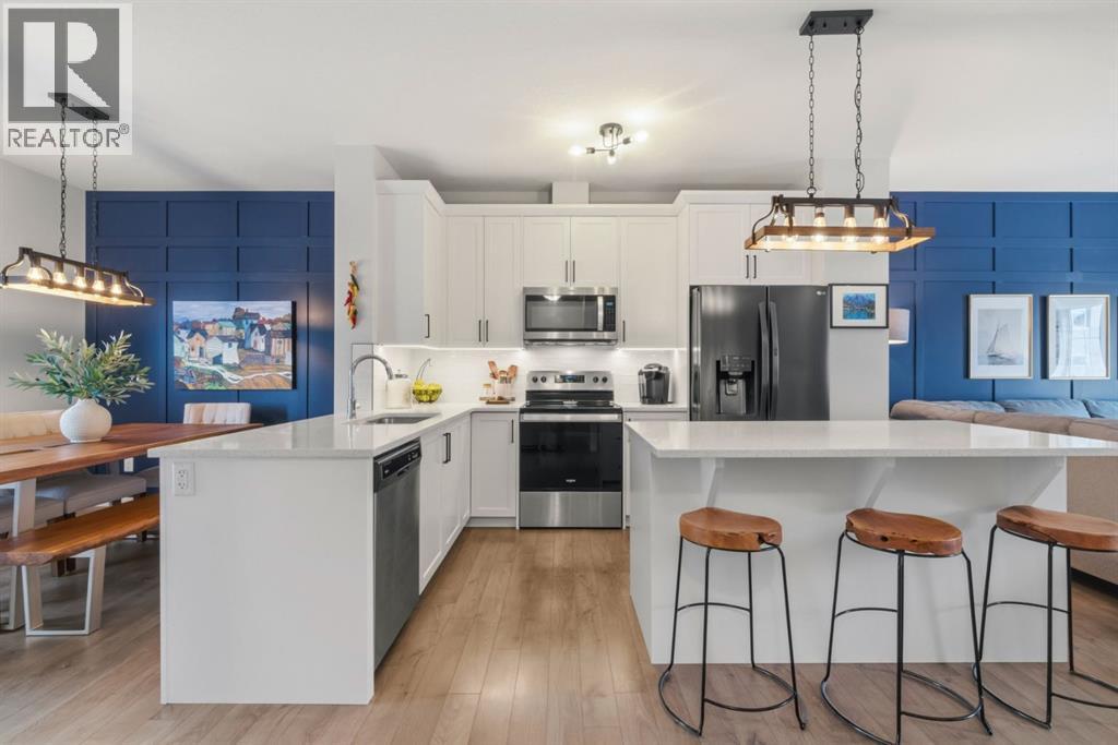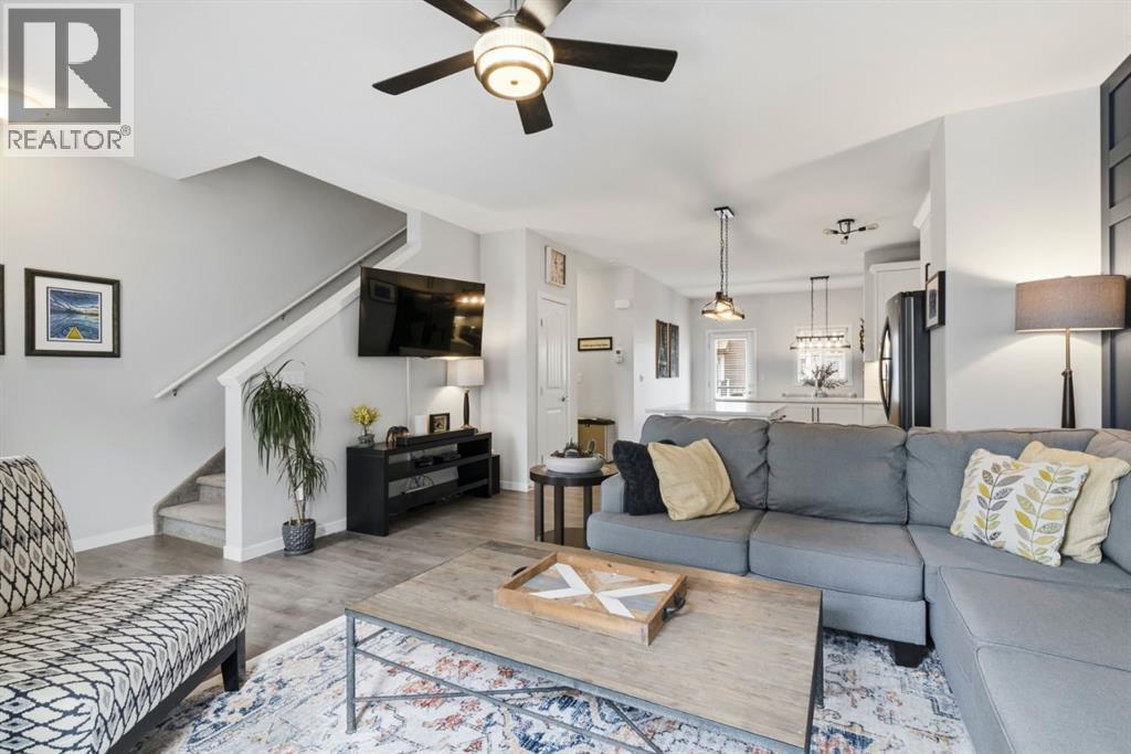Located in the heart of Legacy, this stylish 3-storey 3 BED/2.5 BATH townhome in Legends of Legacy offers over 1700 sq ft of thoughtfully designed living space, a double attached garage, and the perfect balance of privacy and open-concept living along with Air Conditioning for year round comfort. The ground level welcomes you with a bright front den ideal for a home office, gym, or flex space, along with direct access to the insulated and drywalled garage. Upstairs, the main living level is the true heart of the home, featuring a spacious open concept kitchen, dining, and family room anchored by quartz countertops, stainless steel appliances, generous cabinetry, and a separate pantry. Two private balconies extend your living space, one complete with a gas line for effortless summer BBQs, while a convenient tucked away 2-piece bath and in-suite laundry add everyday functionality. The top floor is warm and inviting with brand new carpet throughout, a spacious primary retreat with walk-in closet and private 3-piece ensuite, plus two additional good sized bedrooms bedrooms and a full 4-piece bath. Just steps from scenic walking paths, green space, schools, shopping, and transit, this move-in ready home delivers style, comfort, and low-maintenance living in one of Calgary’s most desirable south communities. (id:6769