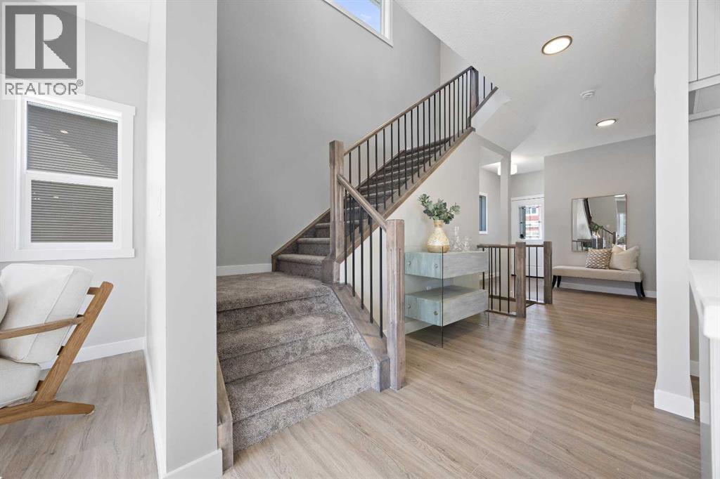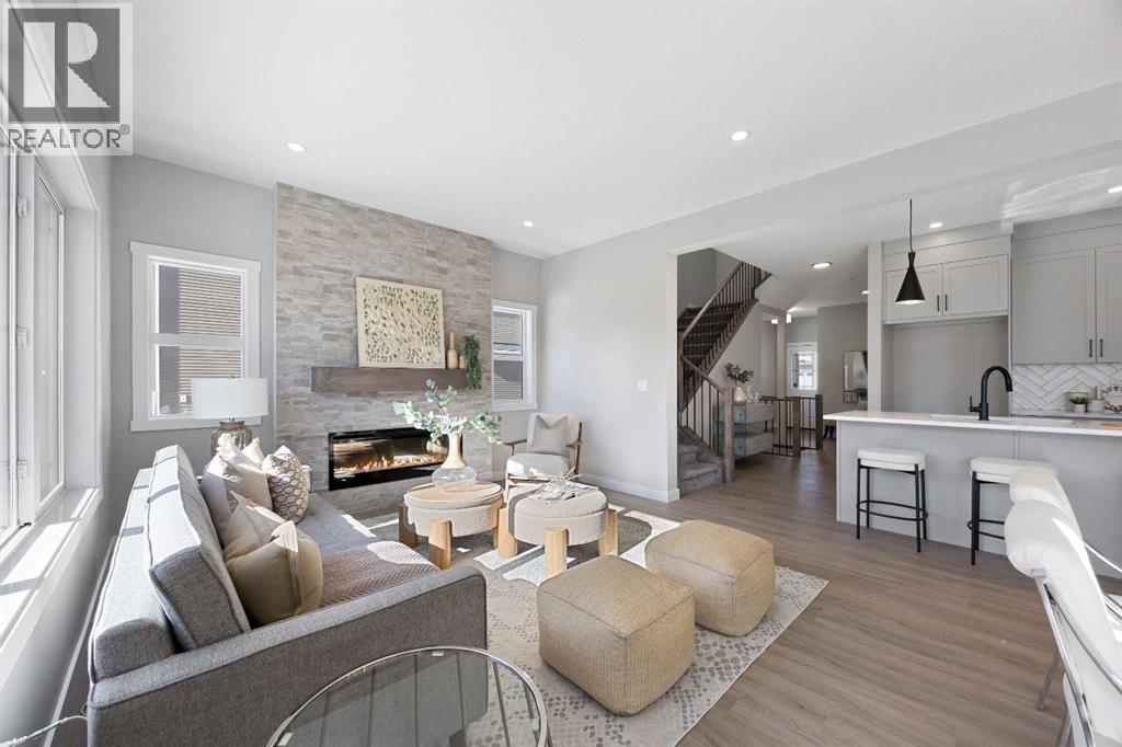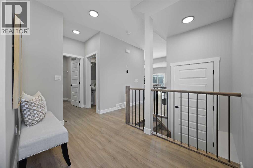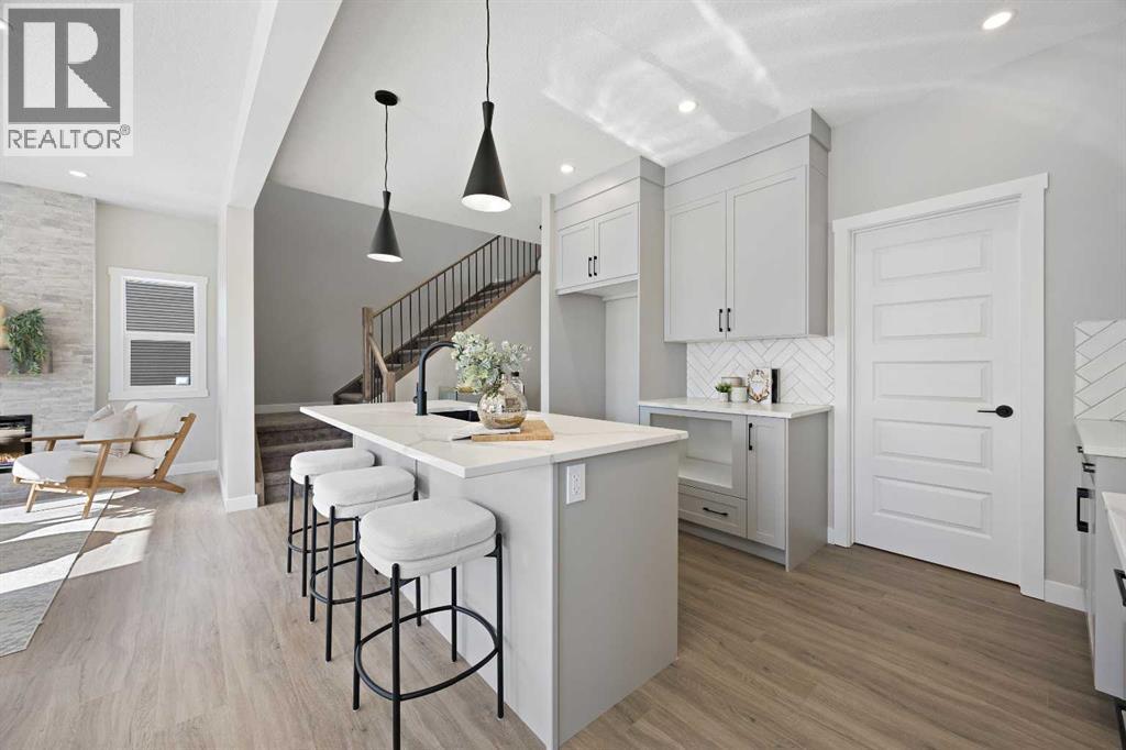 Welcome to 1414 Bayview Crescent, a beautifully designed 3-bedroom, 2.5 bathroom WALKOUT home with sunny south backyard exposure that floods the home with natural light. Step inside to a bright, inviting main floor featuring luxury vinyl plank flooring that spans the entire level and is complemented by 9-foot ceilings. The chef's kitchen showcases sleek grey cabinetry with stylish black hardware, paired with a crisp white tile backsplash, elegant quartz countertops, and stainless steel appliances. A convenient gas line is already installed, should you wish to upgrade to a gas range. The living room features a stunning floor-to-ceiling tiled feature wall, creating a beautiful focal point. Adjacent to the living space, the dining area is ideal for entertaining and flows seamlessly to the outdoors. Extend your living space to the outdoors and enjoy warm summer days on the full-width deck. Completing the main floor are a practical mudroom just off the double-attached garage, a spacious pantry, and a convenient powder room. Upstairs, you'll find a central bonus room that provides separation between the primary suite and the secondary bedrooms, offering both comfort and privacy. The primary retreat is generously sized and features a spa-inspired ensuite with dual sinks, a relaxing soaker tub, and an oversized shower, as well as a truly impressive walk-in closet. A full bathroom complements two additional well-sized bedrooms, while the upstairs laundry room adds everyday convenience. The unfinished walkout basement, with 9-foot ceilings, offers a blank canvas for your future development ideas. (id:6769