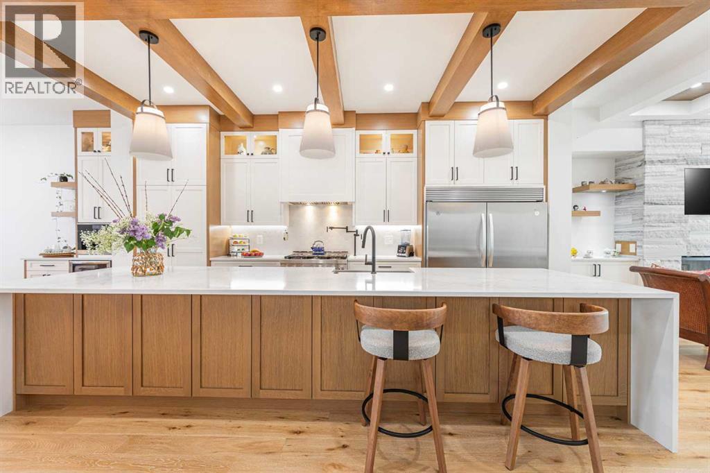 Welcome to this beautifully designed home on a quiet street in the sought after community of Killarney. Offering over 2,800 sq. ft. of luxurious living space, this air-conditioned 4 bedroom, 3.5 bathroom residence showcases exceptional craftsmanship and timeless style. The bright main floor features coffered ceilings, rich hardwood floors, a dramatic curved staircase, and a custom stone fireplace. The chef-inspired kitchen is equipped with full height cabinetry, quartz countertops, premium stainless steel appliances including a commercial-style gas range, a built-in coffee maker, farmhouse sink, and an impressive 12-foot island. The dining area offers seamless access to a landscaped backyard with deck and patio perfect for entertaining.Upstairs, the primary suite offers a walk-in closet and a spa like 5-piece ensuite with heated floors, soaker tub, steam shower, and dual vanities. Two additional bedrooms, a full bath, and convenient laundry complete the level. The fully finished basement features in-floor heating, a spacious family room with wet bar, fourth bedroom, and another full bathroom.Enjoy a heated double detached garage and easy access to parks, schools, the Killarney Aquatic & Recreation Centre, and downtown Calgary. Exceptional inner-city living awaits. (id:6769