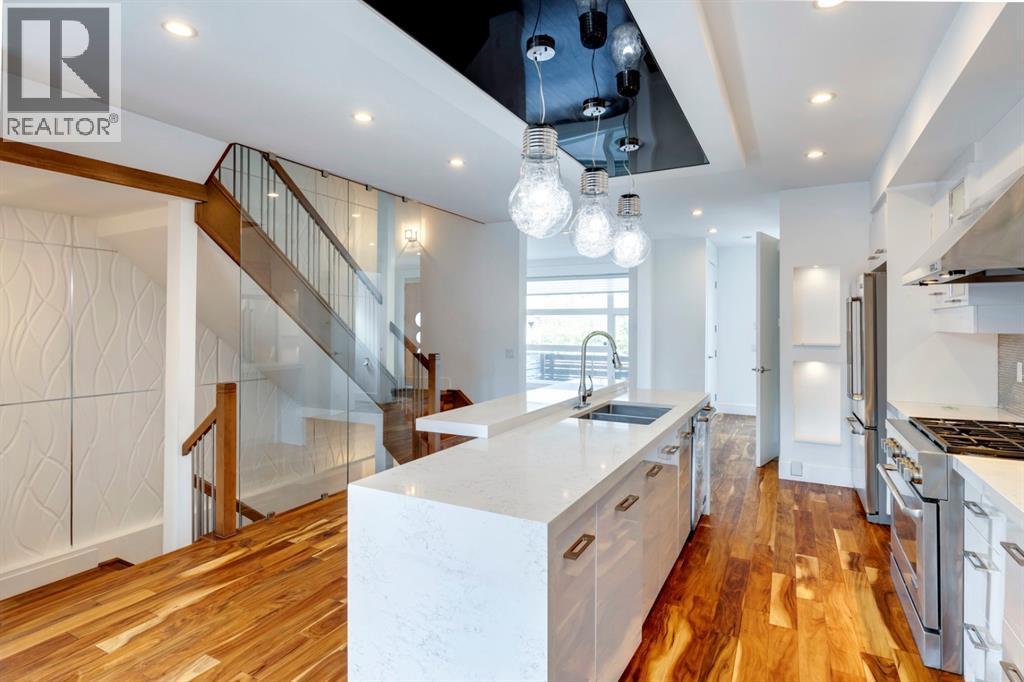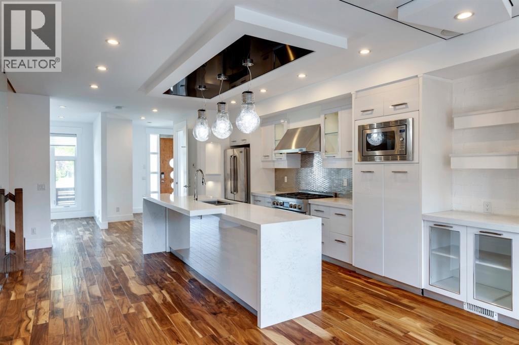 LOCATION!!! Located in the heart of Richmond in a quiet crescent, this custom built 3 story home offers an impressive 2942 sq feet of developed living space. Spacious, open and roomy, this amazing home features a total of 4 bedrooms and 5 baths. The main floor boasts a delightful kitchen, complete with a higher end stainless steel appliance package including 6 burner gas stove, cupboards galore with stone countertops and sizeable island complete with stone waterfall feature! The Master suite takes up most of the second floor with an impressive 5 piece ensuite complete with dual vanities, corner soaker tub, separate shower, heated floor and walk in closet with organizers. 2 more bedrooms complete the 3rd floor with 2 more baths. Developed down offers another bedroom, full bath, bed and recreation area for the family. Equiped with an elevator from top to bottom. Featuring hand scraped hardwood, designer lighting elements, glass wall enclosing the floating staircase and contemporary designed panelled walls. Plenty of built-ins, storage and detailed upgrades throughout. Enjoy the summer in your west facing backyard, aggregate patio and take in the sun and unwind! Close to Marda Loop, shopping, restaurants & pubs, transit, parks, and major thoroughfares without the noise. Style, class & sophistication await you! Enjoy all that Calgarys inner city has to offer right outside your door! (id:6769