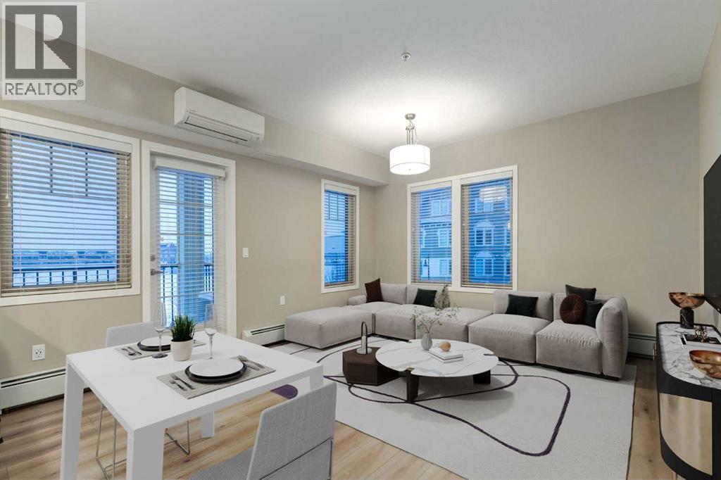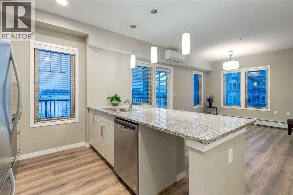 Welcome to this AIR-CONDITIONED 2 BEDROOM, 2 BATHROOM, 898 SQ FT CORNER UNIT in the heart of MAHOGANY - one of Calgary’s most desirable LAKE COMMUNITIES! This stunning condo includes TITLED PARKING in the HEATED UNDERGROUND PARKADE, a STORAGE UNIT + full access to the MAHOGANY BEACH CLUB AMENITIES!!Stepping inside the Foyer, you’re greeted w/NEUTRAL Colours, 9 FT CEILINGS + UPGRADED Vinyl Plank Flooring that leads you down the hall; 4-PC Bathroom sits next to the 2nd GOOD-SIZED Bedroom - this split-bedroom layout is IDEAL for GUESTS, ROOMMATES, or a PRIVATE HOME OFFICE - w/a stacked WASHER/DRYER conveniently located across from the bathroom. Enjoy the OPEN-CONCEPT layout filled w/NATURAL LIGHT from your SOUTH + WEST FACING WINDOWS, + discover an array of UPGRADED FEATURES that truly set this home apart.The Eat-In Kitchen is equipped w/UPGRADED SS Appliances, 1 ¼” GRANITE Counters, a Tiled Backsplash + Bright White CABINETRY w/a FULL PANTRY - delivering both style + function for everyday living or entertaining. The Living Room is WARM + INVITING, filled w/sunlight from the LARGE WINDOWS, creating the perfect place to unwind, host friends, or enjoy a quiet evening in. With its SEAMLESS CONNECTION to the dining area + kitchen and direct access to your PRIVATE SOUTH-FACING COVERED BALCONY, this space offers an ideal blend of comfort, flow + relaxation.The PRIMARY SUITE features LARGE WINDOWS, a WALK-IN CLOSET + a beautifully appointed 4-PC ENSUITE w/EXTRA STORAGE + a GLASS WALK-IN SHOWER - your personal retreat after a busy day. Additional perks include IN-SUITE LAUNDRY, CENTRAL A/C (wall unit), LUXURY VINYL PLANK FLOORING, and a spacious foyer with coat + linen closets.This WELL-MANAGED, PET-FRIENDLY building (with board approval) offers ELEVATOR ACCESS, VISITOR PARKING, and condo fees that INCLUDE Water, Heat, Insurance, Reserve Fund Contributions, Professional Management, and more. To help visualize the space, professionally virtually-staged photos are included , highlighting the layout, scale, and design possibilities this beautiful condo offers.Located steps from PARKS, PATHWAYS, TRANSIT, RESTAURANTS, SHOPS, + of course the MAHOGANY LAKE & BEACH CLUB, this home delivers the perfect balance of convenience + vibrant lakeside living. Whether you're a first-time buyer, downsizing in style, or seeking a turn-key investment, this is URBAN LAKESIDE LIVING at its finest. BOOK YOUR SHOWING TODAY!!! (id:6769