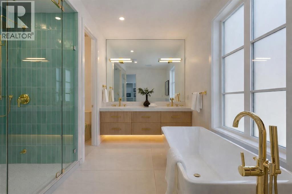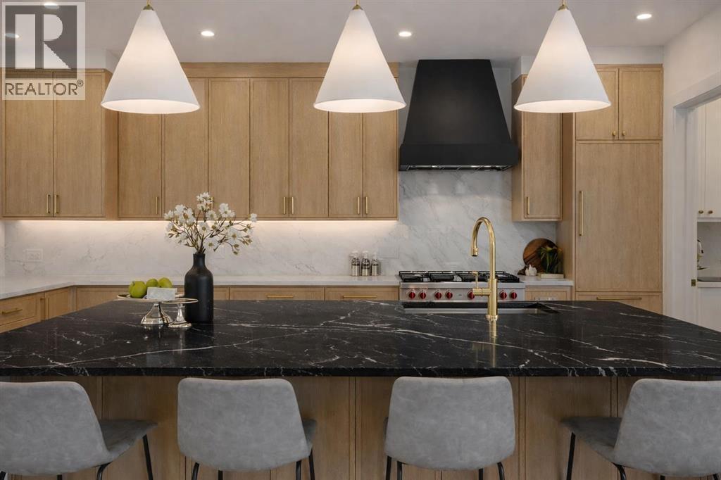 Welcome to the highly sought-after community of Banff Trail, where inner-city convenience meets modern luxury living. This brand-new residence showcases exceptional craftsmanship, thoughtful design, and elevated finishes just minutes from downtown Calgary, the University of Calgary, Foothills Hospital, LRT access, parks, and local amenities.Designed for both elegance and functionality, this home offers 5 bedrooms + 5 bathrooms and a spacious open-concept layout ideal for everyday living and entertaining. Engineered oak hardwood flooring spans all three levels, complemented by a sunny south-facing backyard that fills the home with natural light and sought after TRIPLE Garage.Upon entry, a bright front office with glass-paneled doors provides the perfect work-from-home space. The main floor unfolds into the heart of the home — a chef-inspired kitchen featuring custom cabinetry, dual paneled fridge/freezer units, a premium gas range, paneled dishwasher, a large waterfall island, and a fully outfitted custom walk-through butlers pantry. The adjoining living room invites gatherings around the striking gas fireplace while oversized windows overlook the landscaped yard and oversized deckUpstairs, the HUGE luxurious primary retreat impresses with vaulted ceilings bright sunny south exposure. The spa-like ensuite boasts a freestanding soaker tub, steam shower, dual vanities with extended counter space, and heated tile floors. Two additional spacious bedrooms each feature tray ceilings, walk-in closets and private ensuites. A well-designed laundry room with hanging racks and ample storage completes the upper level.The fully developed lower level is built for lifestyle flexibility, offering a large recreation room, games area, storage, and a wet bar with beverage/wine chillers — perfect for entertaining. Two additional bedrooms (or gym/office options) and a full custom bathroom provide excellent accommodation for guests or growing families. Outside, enjoy a sunny s outh-facing backyard and a rare TRIPLE detached garage, offering abundant space for vehicles, storage, and hobbies.An exceptional opportunity to own a beautifully crafted home in one of NW Calgary’s most desirable inner-city neighborhoods — Book your private showing today! (id:6769