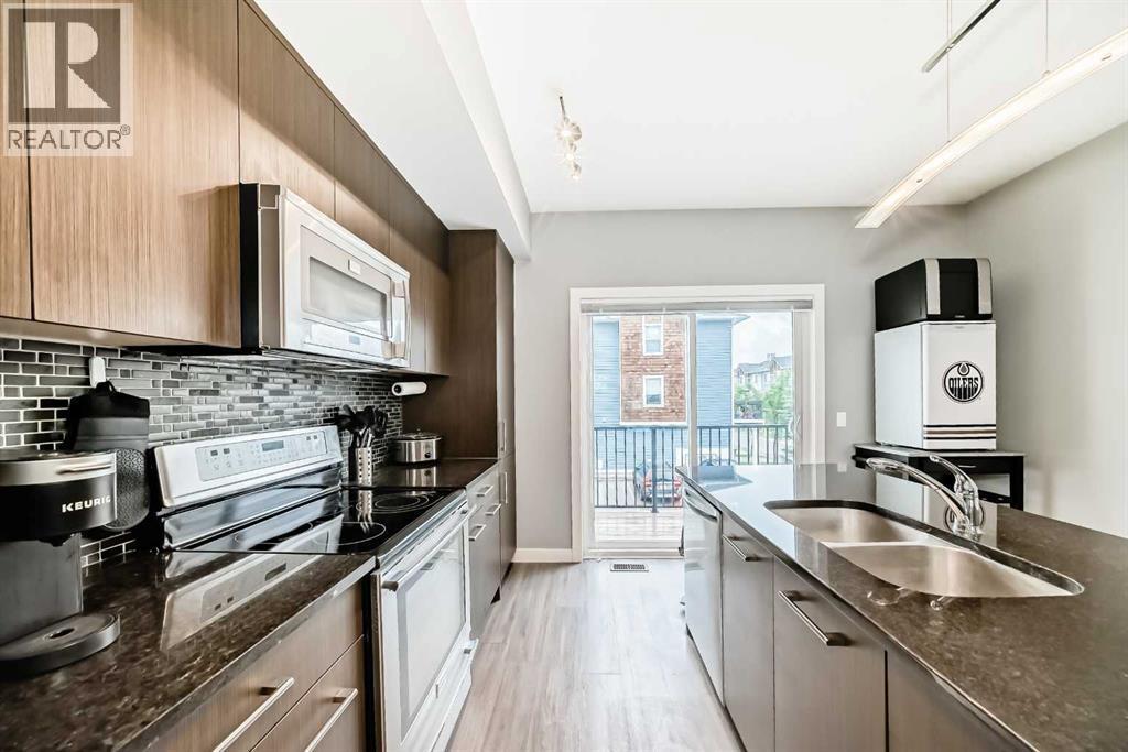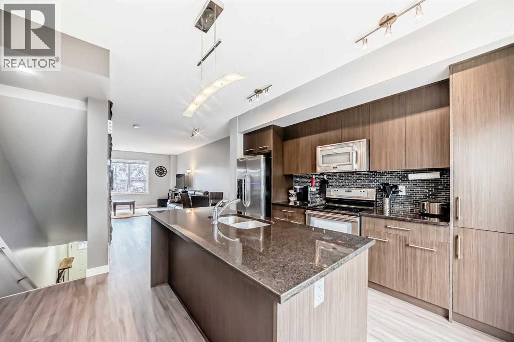 Step into this well-kept 2 bedroom 2 bathroom townhouse, located in a LOW DENSITY and WELL MANAGED complex and perfectly situated at the corner of Kings Heights Gate and Ravenswood Drive, just minutes away from all major amenities and conveniences. You’ll LOVE the entry level with a bright den, a 2-piece bath, and direct access from and to the courtyard and your garage…perfect for your home office. The main floor welcomes you with a bright open layout, highlighted by granite counters, a large kitchen island, modern stainless steel appliances, and an inviting dining area with a stunning feature wall. Upstairs, enjoy two spacious bedrooms and a convenient laundry area featuring PREMIUM stacked machines. With great natural light and a sense of privacy throughout, this home is ideal for first-time buyers, downsizers, or investors. Pets are allowed (with board approval) and condo fees are very reasonable. Move-in ready and just minutes from parks, schools, and shopping—don’t miss this one! (id:6769