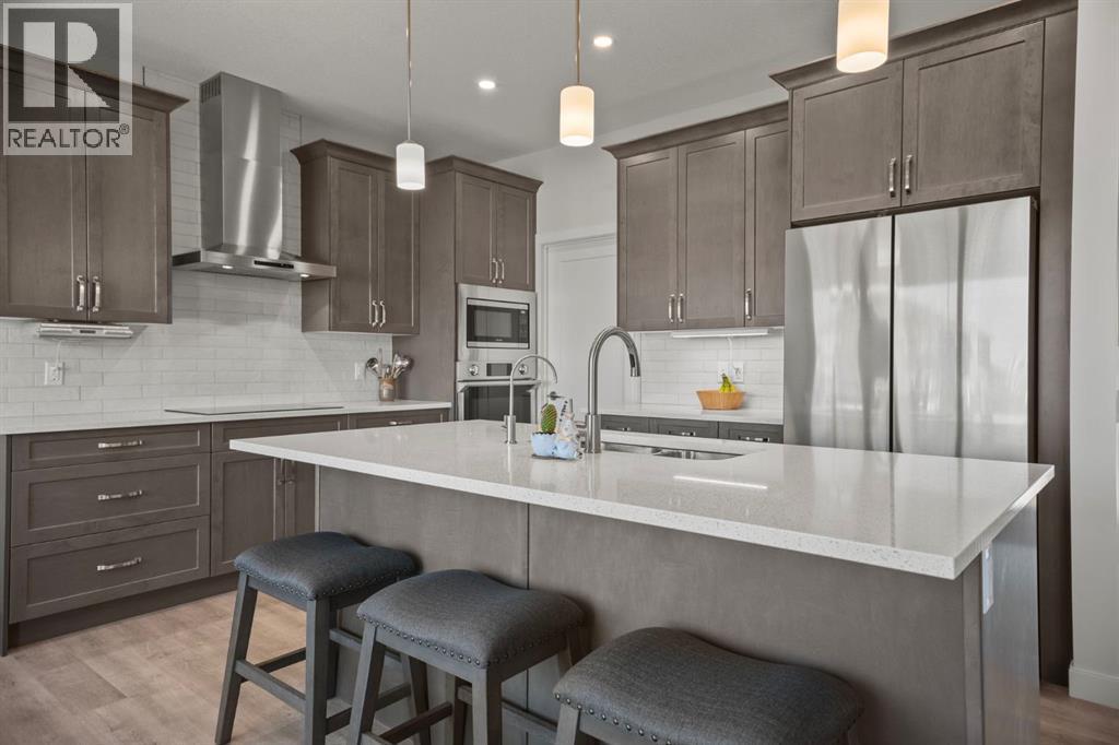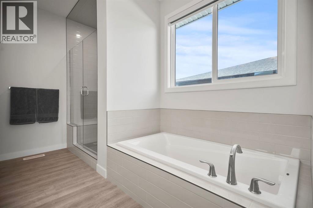 Welcome to this beautifully crafted 2023 bungalow offering over 3,000 sq ft of thoughtfully designed living space in one of Okotoks’ most sought-after locations. With exceptional curb appeal, covered front and back decks, and a large fully fenced rear yard, this home perfectly blends modern comfort with everyday functionality. Step inside to a bright, open-concept main floor where expansive windows flood the space with natural light. The spacious living room is anchored by a stunning gas fireplace, creating a warm and inviting focal point. The seamless flow between the living, dining, and kitchen areas makes this home ideal for both entertaining and relaxed family living. The kitchen is as stylish as it is practical, featuring stainless steel appliances, a large central island, quartz countertops, and a walk-in pantry for added storage. Whether hosting guests or enjoying quiet mornings at the island, this space truly feels like the heart of the home. The main level offers 1,571 sq ft with two generous bedrooms, including a beautiful primary retreat complete with a stunning walk-in closet and spa-inspired ensuite featuring a double vanity and a luxurious soaking tub. A second 3-piece bathroom and convenient main-floor laundry complete this level. Downstairs, the fully finished basement adds an additional 1,437 sq ft of living space, including a large recreation room perfect for movie nights, games, or a home gym. Two additional bedrooms and a 4-piece bathroom provide flexibility for guests, teens, or multi-generational living.Outside, the expansive rear yard offers plenty of room to enjoy — whether it’s summer barbecues on the covered back deck, space for kids or pets to play, or future landscaping ideas. The additional side parking pad is a rare and practical bonus, complementing the double attached garage. Located close to walking paths, schools, and shopping, this home delivers both lifestyle and convenience. If you’ve been searching for modern bungalow living wi th space to grow in a prime Okotoks location — this is the one. Don't miss your chance to see it today. (id:6769