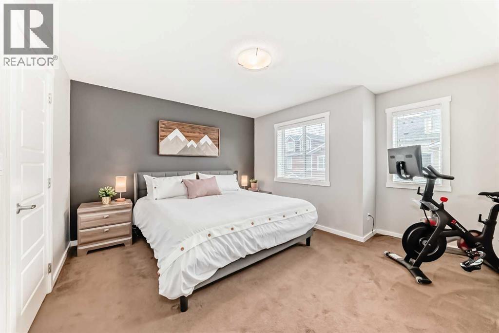 OPEN HOUSE -- SATURDAY MARCH 14, 12-2pm -- Welcome to Ravenswood - quiet streets, parks and pathways, and close proximity to shopping, dining, schools. This lovingly maintained 2-bedroom, 1.5 bath townhome is ideal for downsizing, first-time buyers, or investors. This home has an attractive open concept layout and a quaint private backyard. The bright main floor flows from the living area to the dining space and kitchen. The kitchen features trendy rich cabinetry, quartz counters, an electric stove, dishwasher, and microwave hood fan, plus plenty of counter space for cooking and entertaining. Don't forget about the adorable half bath. Upstairs, you’ll find two HUGE bedrooms. The Primary has room for your King Bed, lots of Furniture and Workout Equipment. The Main Bath is a cheater suite flowing to the WIC and Primary Bedroom. Additional storage can be found in the attic with a pull down staircase allowing access. Fresh paint throughout, Air Conditioning and upper floor laundry make this home a dream! Enjoy your fenced backyard, perfect for BBQs, gardening, or watching your children play. This property includes a dedicated parking stall. Condo fees include snow removal, landscaping, and insurance. 2 pets allowed. Make it yours today! (id:6769