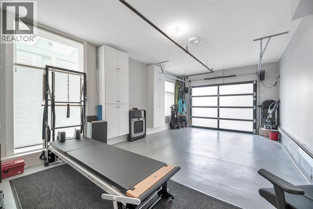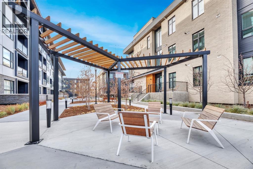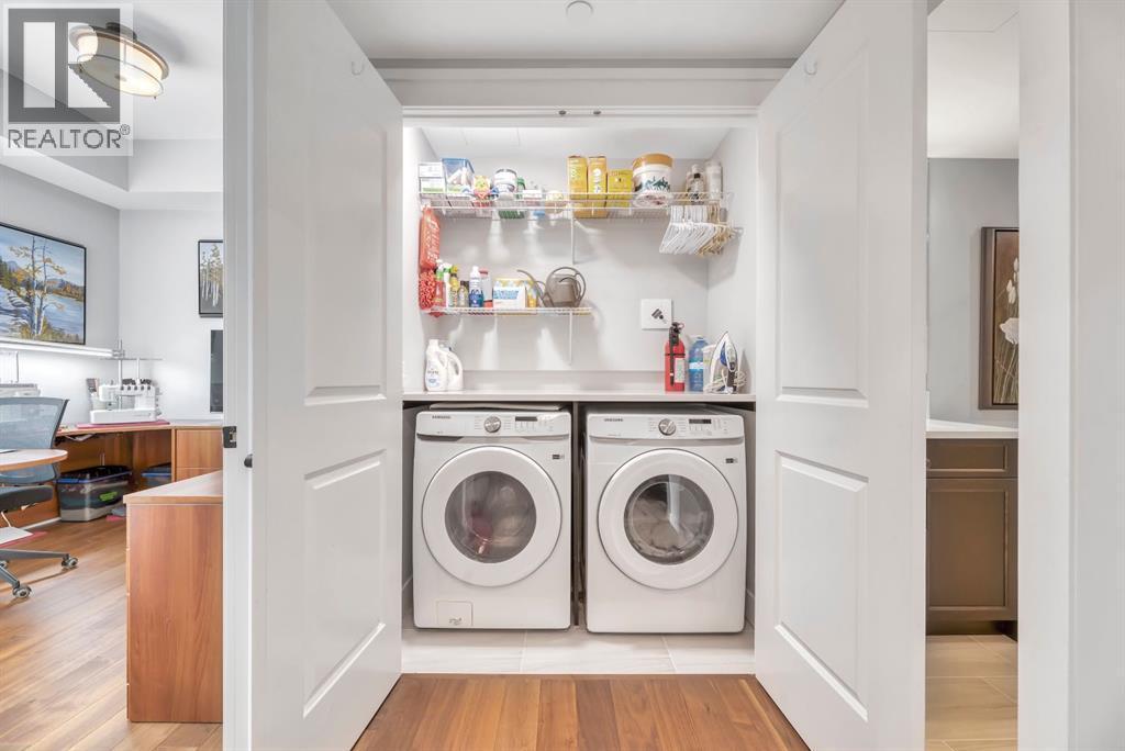 Welcome to Luxury Lock and Leave Living in the Heart of the vibrant and happening University District - and can you believe that you have exceptional condo living with an attached Private and Heated Garage for your vehicle! Not that you will need your vehicle much because everything you need is within short walking distance away, from 2 dog parks, miles of walking paths and green spaces, cafes, restaurants, grocery store, business district with numerous medical offices, lawyers, vet and pet clinics and the list goes on an on. When you are not out walking in this welcoming community, you can be enjoying this beautiful 1230 square foot, 2 bed, 2 bath executive condo in the coveted Capella Stacked Flats open-concept layout where 10’ ceilings and large windows create an airy, elevated atmosphere. High end finishes include gorgeous engineered Walnut hardwood floors throughout, chef-inspired kitchen complete with a 13.5' long, oversized island, upgraded cabinetry, premium Fisher & Paykel appliances, a custom built-in wall pantry, a dedicated tech center, undermount lighting for ambience and a tasteful Herringbone pattern backsplash. The spacious dining and living area makes it easy to host gatherings or enjoy a quiet night around the fireplace. This home has a sunny South facing balcony with a Phantom screen door and a gas line for a BBQ. There is also a water line on the patio to help keep your plants or flowers fed. The primary bedroom offers a custom walk-in closet, tray ceilings and spacious ensuite with dual sinks, a beautifully tiled shower with bench, cozy heated floors, and generous storage and counter space. The second bedroom doubles beautifully as a home office or guest suite with the other 3 pc bath directly across fitted with heated floors and another tiled shower. This space also houses the On demand Navien hot water tank and HRV with humidifier, neatly tucked away in its own storage closet. A rare luxury in condo living, this unit includes its own oversized , private heated garage—providing security, storage, and ease of entry. There is a handy workbench with cabinetry, windows along the side for natural lighting and epoxy floors as well as a convenient water line. Designed with quality, sustainability, and lifestyle in mind, this LEED-certified building offers a boutique living experience with only eight units per building and just two neighbours on your floor. Each unit has its own heating, ventilation and air conditioning systems. Also included is a premium fitness center for residents use and lovely garden and patio areas throughout the complex. A true standout home in one of NW Calgary’s most desirable communities—Experience an unbeatable work-life balance when you call this best-selling urban community home. (id:6769