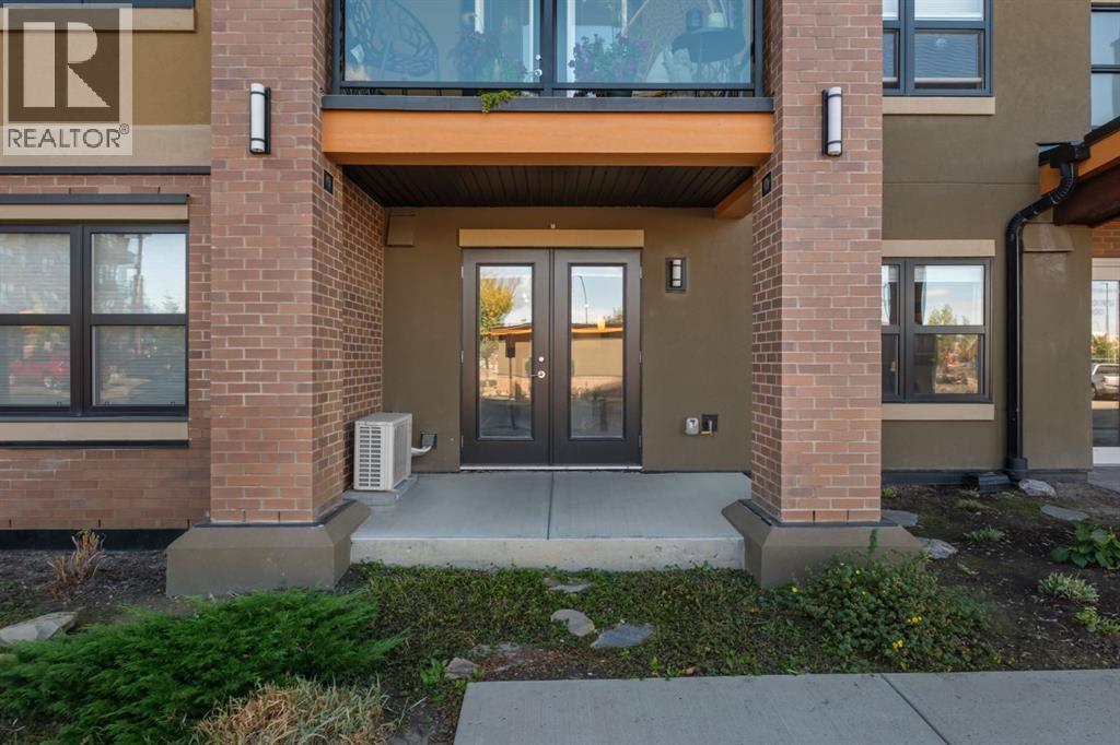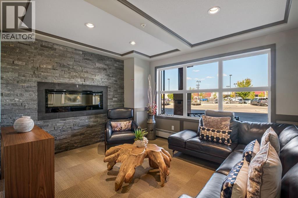 Want to have everything at your doorstep? Groceries, medical, restaurants, fitness, even massage! "Right-size" into this absolute GEM! Modern open-concept layout, Stylish - quiet +55 condo community - Main floor unit - Easy access for moving and getting to the grocery store! - Ceramic in-floor heating - In-suite air conditioning - One-owner home, well maintained - Updated kitchen with upgraded backsplash & under-cabinet lighting - Large kitchen island, ideal for entertaining - Over-the-range microwave - Pantry with roll-out shelves Quiet, soft-closing cupboard doors and drawers - Spacious bedroom with dual closets - Blackout window coverings plus curtains for comfort & privacy - Bathroom with walk-in shower & built-in shelving - Cozy carpet in bedroom/living areas -TWO PARKING STALLS: One directly outside patio door — ideal for groceries & easy access. One secure underground stall with extra storage, located right across from stair access - Elevator access for convenience to underground parking, Perfect for couples with two vehicles or a single person with one vehicle and extra parking for family or guests parking beyond 24 hours - Small pets allowed - Barbecue gazebo for outdoor gatherings - Community turf grass area for pets to enjoy - Card game days in the amenity room - amenities room & landscaped private courtyard - No-smoking - Steps to Kingsview Market (groceries, dining, pharmacy, medical) - Close to parks, ponds & amphitheatre - Easy access to Genesis Place recreation complex - Quick commute to Calgary via Highway 2 & Yankee Valley Blvd. Come see it today! (id:6769