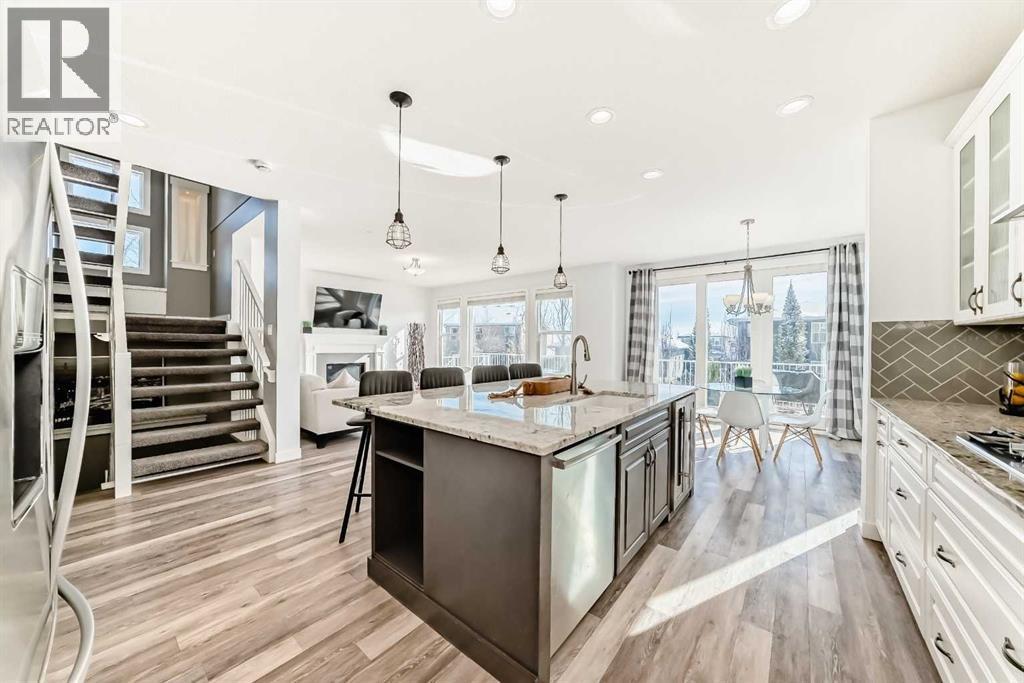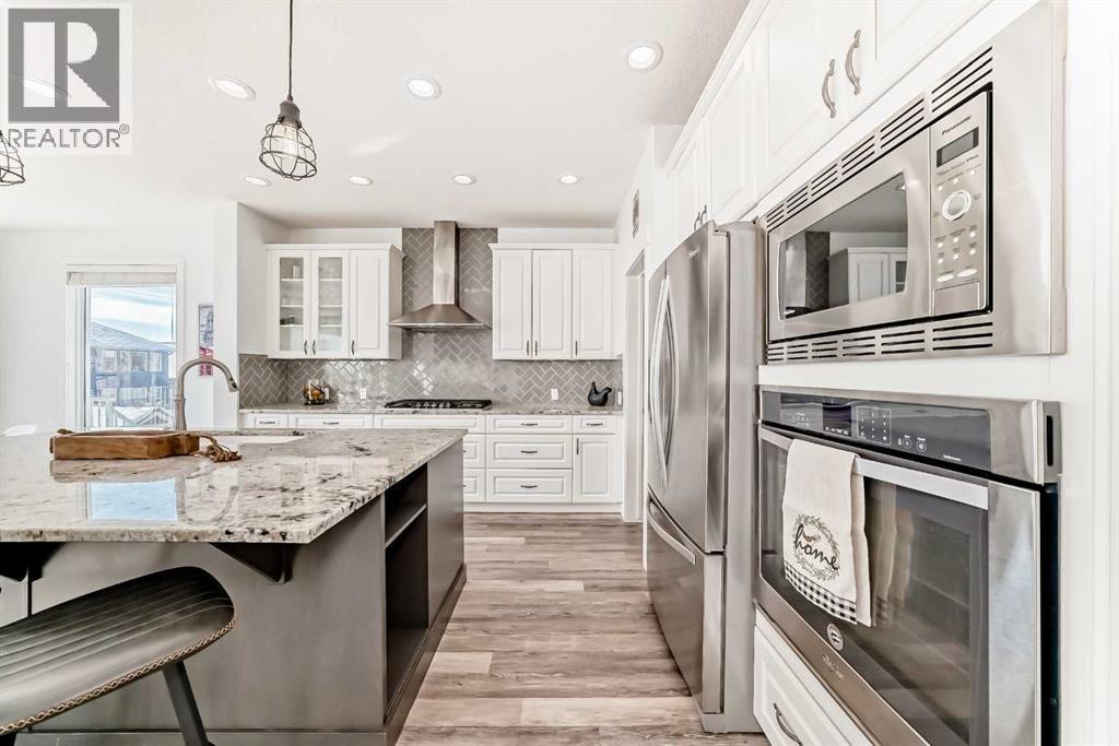Open House March 14+15, Saturday +Sunday 1-4pm. Welcome to over 3,700 sq ft of beautifully developed living space offering 6 bedrooms, 3.5 baths, and an oversized double attached heated garage, all perfectly positioned on an impressive 8,852 sq ft cul-de-sac lot in the heart of Mountainview. With over $170,000 in upgrades and improvements, this is the one that truly stands out.Located on one of the community’s premier streets, this exceptional property features a sun-drenched south-facing backyard designed for unforgettable entertaining and everyday relaxation. Enjoy the expansive deck, custom stamped concrete patio with fire pit, fully fenced and professionally landscaped yard with irrigation, plus 220–100amp pre-wiring ready for your future hot tub. Your private outdoor retreat awaits.A charming covered front porch welcomes you into a spacious foyer and a thoughtfully designed open-concept main floor where modern elegance meets everyday comfort. Durable, low-maintenance flooring flows seamlessly throughout. The stunning feature fireplace anchors the living room with warmth and style, while oversized south-facing windows flood the home with natural light.The chef-inspired kitchen is a showstopper; boasting an oversized white granite island, beautiful cabinetry, ceiling-height custom backsplash, premium stainless-steel appliances, separate beverage fridge, clever built-in storage solutions, walk-through pantry, and a dedicated coffee/breakfast bar.The bright dining nook wrapped in windows creates the perfect setting for family gatherings.The main level also offers a stylish powder room,practical mudroom,+ a private enclosed office ideal for working from home.Upstairs, the expansive primary suite easily accommodates a king bed +features a spa-inspired ensuite with dual granite vanities, soaker tub, separate glass shower, and a generous walk-in closet.Three additional spacious bedrooms share a beautifully appointed five-piece bath.A vaulted bonus room filled with nat ural light provides flexible living space, while upper-floor laundry adds everyday convenience.The fully finished basement offers incredible versatility with a large recreation room complete with built-in bar and fridge, two additional bedrooms with oversized windows and independent heat control, and a full bathroom —perfect for guests, teens, or multi-generational living.Additional upgrades include central air conditioning, integrated smart home technology, wired sound system servicing the living room, primary suite, bonus room and deck, plus architectural/X-mas exterior lighting that creates stunning curb appeal year-round.Oversized double attached garage is insulated, drywalled, heated,+ features its own electrical panel + E.V. or welding outlet. The extended driveway easily accommodates four vehicles.With convenient access to major roads,without crossing railway tracks,this home seamlessly blends luxury, functionality, space, + location.This is more than a home, it’s a lifestyle upgrade. (id:6769