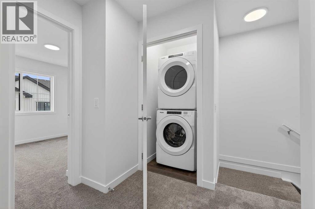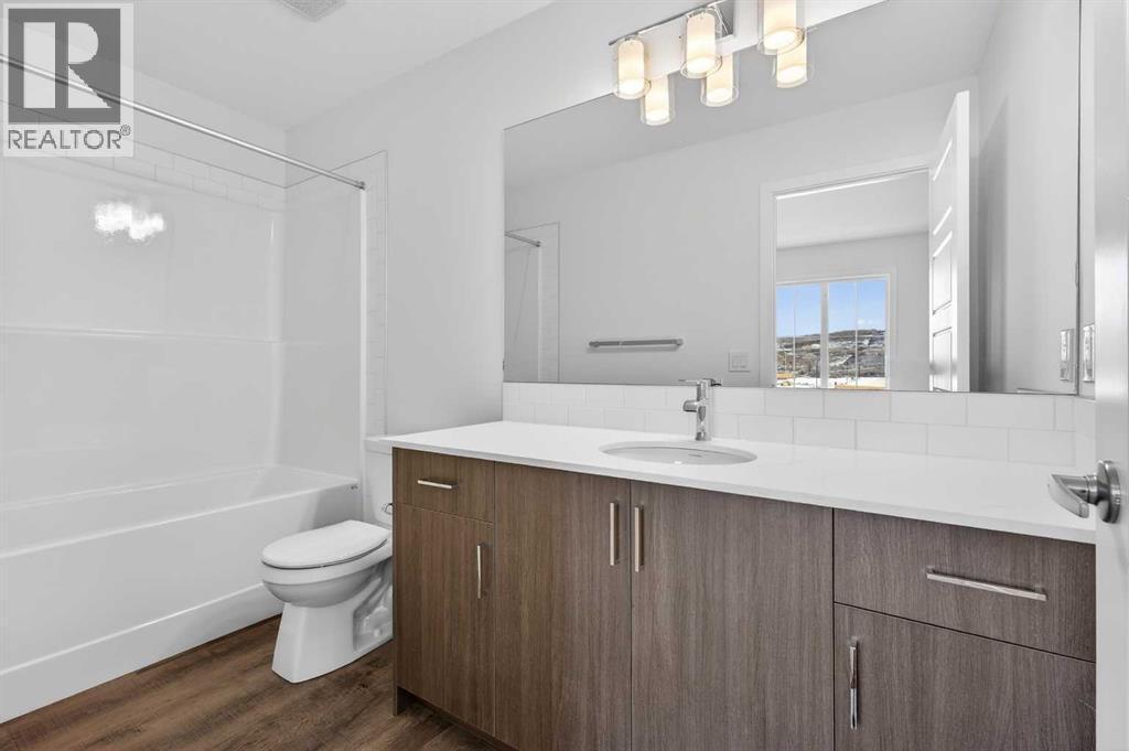 OPEN HOUSE on Saturday AND Sunday from 12-5pm. Please go to the Show Home located at 96 Creekside Drive SW for access. StreetSide proudly presents this exceptionally popular interior-unit townhome, where expansive living areas meet modern comforts and sophisticated finishes. The thoughtfully designed floorplan features three spacious upper-level bedrooms and two and a half well-appointed bathrooms, complemented by a versatile lower-level den perfect for a home office or quiet retreat. The heart of the home is an inviting open-concept main floor, anchored by a large gourmet kitchen featuring a functional breakfast bar for casual dining. This bright living space transitions seamlessly to a private balcony, offering a perfect setting for outdoor relaxation.The interior showcases high end craftsmanship, including modern dark slab-style cabinetry with a full bank of drawers for maximum storage. The kitchen is further elevated by polished white quartz countertops and a full suite of premium stainless steel appliances. Durable luxury vinyl flooring runs throughout the primary living areas, while the stairs and upper level are finished with plush carpet over an 8lb underlay for superior comfort. Additional conveniences include an attached double car garage, professionally maintained landscaping, and a lifestyle defined by maintenance free living.Life at Sirocco Gate East in Southwest Calgary is about more than just living—it’s about thriving. Imagine having a picturesque central green space at your doorstep, offering opportunities for both tranquil reflection and vibrant community events. Residents enjoy the luxury of sophisticated townhome living with the Rocky Mountains as a backdrop and easy access to both Stoney Trail and Macleod Trail. With daily essentials located in nearby shopping centers, this home offers the perfect blend of scenic serenity and urban convenience. (id:6769