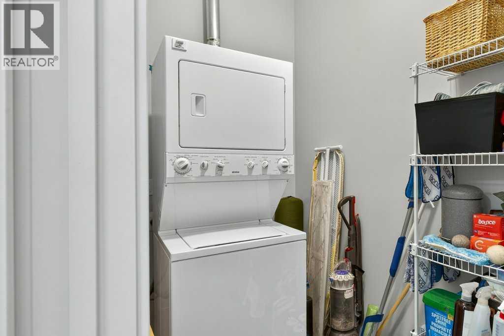 Welcome to this beautifully designed 2-bedroom + den, 2-bathroom home that blends luxury, comfort, and convenience in one of the quietest buildings in the area. From the moment you step inside, the impressive 10 & 11-ft ceilings create a bright, spacious, and elevated feel throughout the open-concept layout. The modern kitchen offers excellent functionality with a large pantry, premium finishes, and plenty of room for cooking and entertaining family and friends. The living area extends seamlessly to your private balcony, perfect for enjoying a morning coffee or simply unwinding at the end of the day. Both bathrooms are thoughtfully upgraded with in-floor heating, providing year-round comfort. The home also includes custom blackout blinds, ideal for privacy and restful nights, along with central heating and air conditioning with in-unit controls for personalized comfort in every season. A dedicated laundry room with extra storage adds convenience, while the building itself enhances your daily living with an exceptionally quiet atmosphere, a separate storage unit, and a titled parking stall. You’ll also appreciate the added security and service of a Monday–Friday concierge (9 am–5 pm). Perfectly appointed and impeccably maintained, this upscale condo offers a rare blend of luxury features and everyday practicality—truly a rare opportunity. (id:6769