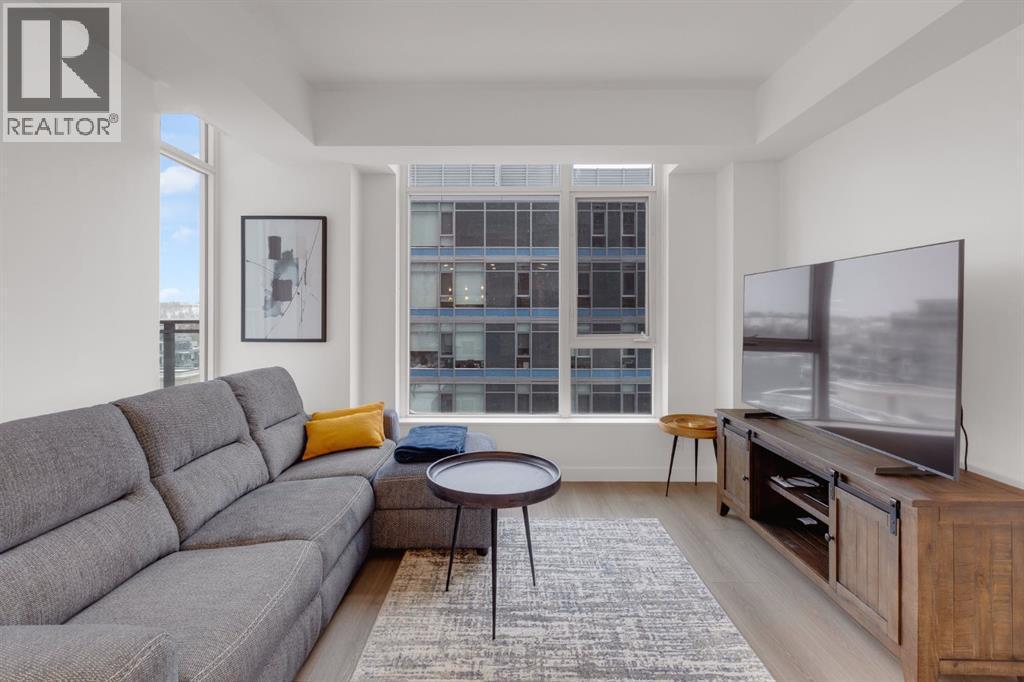URBAN BACKYARD Unit 803 offers a lifestyle rarely found in high-rise living: an expansive 458 sq. ft. private terrace that effectively increases living space by over 50%. This “backyard” in the heart of Eau Claire is equipped with both water and gas hookups— convenient for entertaining and urban gardening.THE RESIDENCE This northwest corner suite is presented in pristine condition with partial views of the Bow River Valley. The thoughtful floor plan features bedrooms at opposite ends of the unit for maximum privacy—ideal for guests or a quiet home office. The kitchen features a premium appliance package, including Miele, Fulgor, and Blomberg, accented by quartz counters. Strategic upgrades include integrated LED lighting and a smart lock.THIS BUILDING’S ADVANTAGE Located in Parkside 2B, this unit offers an exceptional level of convenience. Only steps from the Bow River pathways, it balances tranquillity with downtown living. Parkside 2B is the only building in the development where the premier amenities—concierge, gym, yoga/spin studio, hot tub, steam room, and party room—are accessible just an elevator ride away. A guest suite is available for visitors, while a heated underground parking stall, oversized storage locker, car wash bay, and bicycle storage room complete this executive-level offering. (id:6769