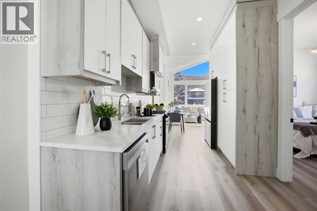 Welcome to this exceptional new-build semi-detached home in the heart of Bowness, one of Calgary’s most charming and established communities. Thoughtfully designed with versatility and investment potential in mind, this stunning property offers a basement legal suite and an unbeatable opportunity.The main level features a bright, open-concept layout with soaring vaulted ceilings that create an airy, sophisticated atmosphere. The beautifully appointed kitchen showcases high-end appliances, modern finishes, and generous counter space, perfect for entertaining or everyday living. With 2 spacious bedrooms and a full bath and a powder room on the main floor, this level is ideal for small families, professionals, or downsizers seeking stylish single-level living.Downstairs, you’ll find a 2-bedroom basement legal suite complete with its own high ceilings, a fireplace and its own private patio, a rare and highly desirable feature. Whether you’re an investor looking for strong rental potential or a homeowner wanting a mortgage helper, this lower level adds incredible flexibility and value.Outside, enjoy a good-sized backyard and a deck perfect for summer gatherings, pets, or gardening, along with a detached double car garage for added convenience and storage.Located just minutes from Canada Olympic Park, residents enjoy year-round recreation including skiing, biking, and outdoor activities. Bowness is beloved for its mature tree-lined streets, strong community feel, proximity to the Bow River pathways, parks, schools, and easy access to downtown and the mountains.This home is perfectly suited for Investors seeking excellent rental income potential, first-time buyers looking for a mortgage helper, families wanting space and flexibility and downsizers who appreciate modern design in a mature neighbourhood.Modern living. Income potential. Established community charm. (id:6769