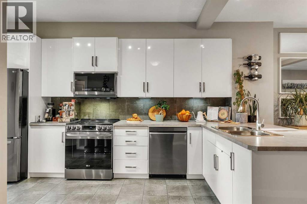This updated 3-storey townhome offers 2 bedrooms, 3 bathrooms, over 1,160 sq. ft. of thoughtfully designed living space, and the comfort of central A/C—all in the well-managed, pet-friendly York 29 complex, just steps from the shops and restaurants along 130th Avenue. Pull into your secure double attached garage, close the door behind you, and leave the day where it belongs. Head up to the main living level, where an open layout makes everyday living feel effortless. The chef’s kitchen is the heart of the home, featuring crisp white cabinetry, top-of-the-line stainless steel appliances, generous storage, and plenty of workspace. From here, step out onto your private deck overlooking the central courtyard, fire up the natural gas BBQ, and enjoy summer evenings grilling while the sun goes down. Inside, the living and dining areas flow seamlessly, perfect for hosting friends, sharing meals, or simply kicking back on the couch after a long day. There’s even room to carve out a dedicated workspace, giving you separation between work and life without sacrificing style or comfort. When it’s time to unwind, head upstairs to find two spacious bedrooms, each with its own ensuite bathroom, a layout that works beautifully for couples, roommates, or guests. Convenient upper level laundry and extra hallway storage make daily life that much easier. Retreat to your primary suite, tuck everything away in the walk-in closet, draw the blinds, and enjoy the quiet comfort of a space designed to help you recharge. Turnkey, stylish, and perfectly located, this home is ideal for those who value convenience, comfort, and a low-maintenance lifestyle—without compromise. The home comes equipped with a video doorbell and rear facing exterior camera so you’re always connected to your home, and check in anytime, from anywhere. For those waiting for the right one — this may be it, book your private showing today. (id:6769