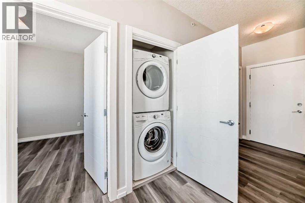 This is the best deal in the same condo! Just installed flooring right before listing, this unit is facing NE with a nice ravine view plus a view far out to Evanston. Featuring laundry in unit, a quiet den suitable for home office, a 100sqft bedroom, kitchen with quartz countertop and full set of appliances and brand new faucet installed, Eat-In-Kitchen and living room in a piece close to 300sqft, plus the balcony gathered all the advantages of the location and direction in its view. One underground parking stall is included, several shopping centers nearby especially Sage Hill Plaza shopping center which is just 3-5 minutes walk. Creekside Plaza is also 7-10 minutes walk and Beacon Hill Plaza is just 2-3 minutes drive. Public transit stop is just by the side of the building, this home is ideal for bachelor and couple. Come check it now! (id:6769