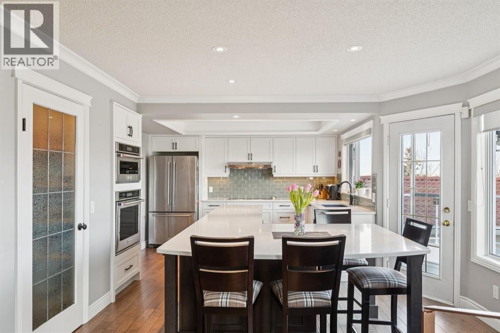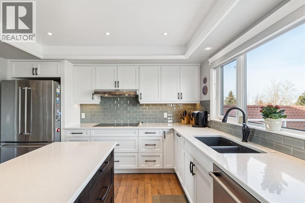 163 Edgebrook Close NW | EdgemontWelcome to one of Edgemont’s most coveted locations, set on a rare corner pie lot backing directly onto green space and just moments from Nose Hill Park. With stunning views, a walkout basement, and over 4,000 sq ft of total developed living space, homes like this seldom come to market.Proudly owned and meticulously maintained by the same owners since 1991, this fully renovated home reflects true pride of ownership throughout and delivers the perfect blend of luxury, functionality, and location.The main level is designed for both elevated entertaining and everyday comfort, featuring two spacious living rooms, one with a cozy fireplace, plus a formal dining room. The renovated chef’s kitchen is the heart of the home, showcasing high-end KitchenAid appliances, including a double wall oven, induction cooktop, premium dishwasher, and a generous pantry. Rich hardwood and tile flooring flow seamlessly throughout, highlighting the quality craftsmanship.A full bathroom and a large main floor office, easily used as a bedroom to add flexibility for guests, extended family, or work-from-home needs.Upstairs, the expansive primary retreat offers gorgeous views, a luxurious 5-piece ensuite, and a large walk-in closet. Three additional bedrooms and a full bathroom complete the upper level, creating an ideal layout for families.The fully developed walkout basement expands your living space even further with a massive rec room and second fireplace, a pool table, a built-in bar, dedicated gym, large laundry room, abundant storage, and an additional bathroom, perfect for entertaining or relaxing.Step outside to a meticulously landscaped yard that transforms into a private garden oasis in the summer, backing directly onto green space for added privacy and tranquility. A standout feature is the 514 sq ft working shed, a true workman’s dream, ideal for hobbyists, trades, or extra storage Complete with a double attached garage, breathtaking views, exceptional upkeep, and an unbeatable location in one of NW Calgary’s most prestigious communities, this is a rare opportunity.Homes in this pocket of Edgemont rarely come available. This one will not last long, book your showing today. (id:6769