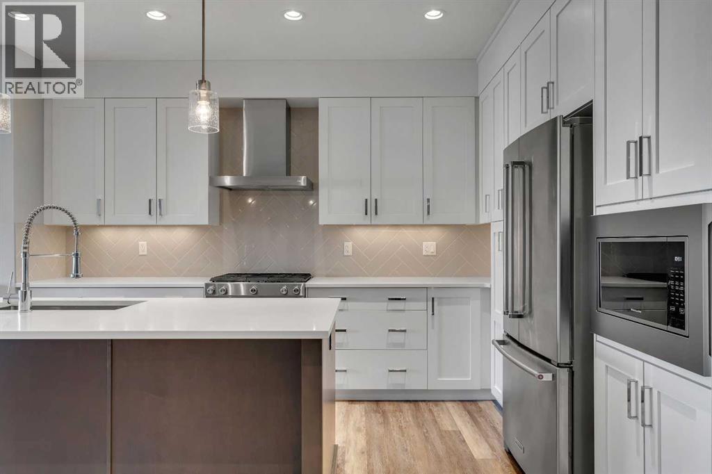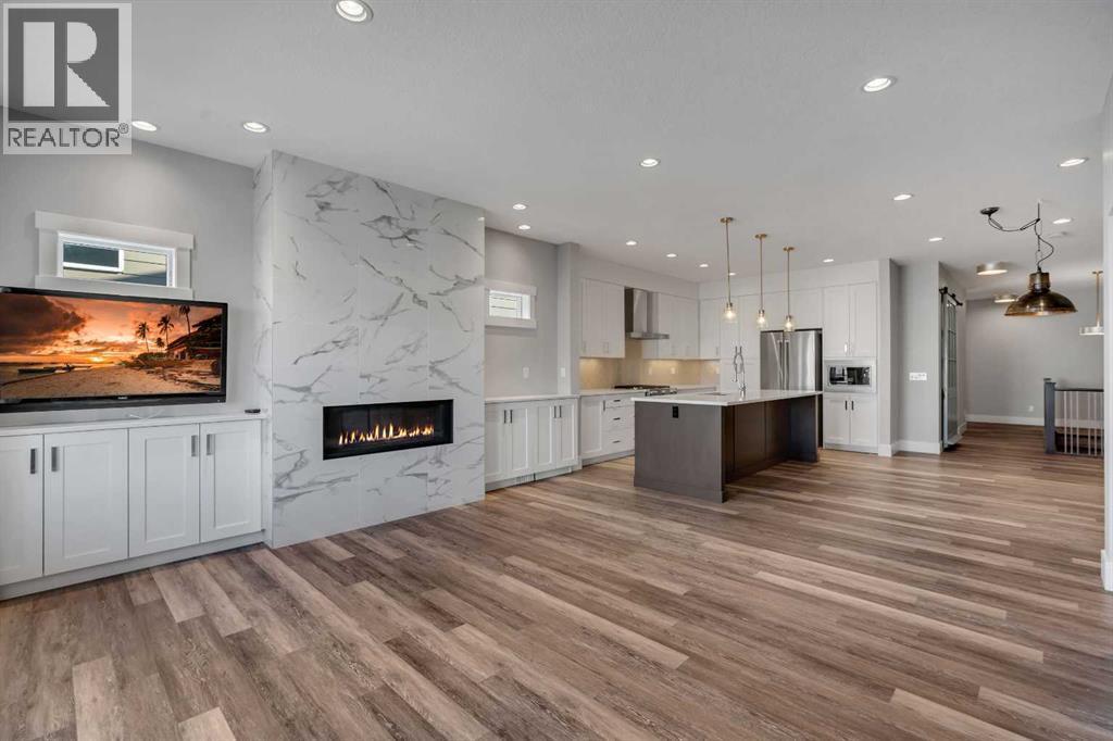 Welcome to 95 Sierra Morena Manor SW! A beautifully crafted villa-style bungalow in the sought after Morena West community of Signal Hill offers 3 bedrooms, 3 bathrooms, and over 2800 square feet of developed living space where low-maintenance living meets genuinely elevated design. From the moment you step through the front door, the quality is unmistakable. Hard surface flooring throughout, high ceilings, and an abundance of natural light set the tone for the open plan main floor, where the living room, dining area, and kitchen flow effortlessly together. The kitchen is a true centrepiece — designed for those who love to cook and gather. Two-tone cabinetry in crisp white and rich mocha pairs with quartz countertops, a large island with undermount sink, gas range, stainless steel appliances, and canopy hood fan. Designer brass pendant lighting and a herringbone tile backsplash add a layer of warmth and sophistication. And thanks to a thoughtful owner customization, a generous walk-in pantry just off the kitchen provides the kind of storage that serious home cooks dream about. The living room anchors around a breathtaking floor-to-ceiling showstopping tile surrounding a sleek linear gas fireplace. Step through the rear door to your private west-facing deck, enclosed by a frosted glass privacy panel and surrounded by maturing evergreens against a striking stacked stone perimeter wall. No rear neighbours, no overlooking homes — just open skies and afternoon sunshine. The main floor primary suite is a genuine retreat, complete with a spa-inspired 5-piece ensuite featuring double vessel sinks, quartz countertops, a soaker tub with separate shower, and a walk-in closet with custom built-in organizers. Just off the main living area is something you won't find anywhere else in the community — a den framed by a reclaimed antique schoolhouse door sourced from Wales, UK. Original glass panes, aged wood, a story built into every detail. Whether it becomes your home office, rea ding room, or additional bedroom when guests arrive, it earns its place the moment you see it. Downstairs, the fully developed lower level surprises with its scale and finish quality. A massive rec room features a second gas fireplace and plenty of room for a media area, games table, or whatever your lifestyle calls for. Two additional bedrooms, a beautifully finished 3-piece bathroom, and a dedicated laundry room with cabinetry, quartz countertop, utility sink, and stacked front-load washer/dryer. Located in one of Calgary’s most desirable west-side communities, Morena West offers quick access to Westhills Shopping Centre, Griffith Woods, and an extensive network of walking and biking paths. With its premium upgrades, expanded functional spaces, and rare parking convenience, this home truly stands out within the community. Book your private showing and discover refined living in Morena West. (id:6769