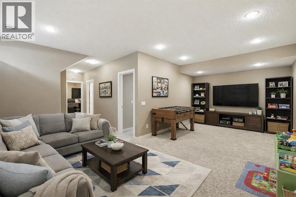 Welcome to this exceptional 2-storey home in the highly desirable community of King’s Heights, offering over 3,047 sq.ft. of developed living space with 5 bedrooms, 3.5 bathrooms, and a spacious upper bonus room—designed for growing families. The bright, open-concept main floor is filled with natural light from oversized windows and finished with durable luxury vinyl plank flooring. The chef-inspired kitchen anchors the home, featuring an island, granite countertops, stainless steel appliances, and a walk-through pantry that connects seamlessly to the mudroom and insulated double attached garage—ideal for busy households. The inviting living room centers around a gas fireplace with tile surround, creating a warm, comfortable space. Upstairs, the generous bonus room offers the perfect setup for a media space, home office, or kids’ retreat. The primary suite is a true escape, complete with a walk-in closet, dual vanities with granite counters, a separate shower, and a spa-style soaker tub. Two additional bedrooms and a full bath complete the upper level. The fully finished basement expands your options with a large recreation room, an additional bedroom, full bathroom, and dedicated laundry area—ideal for guests, teens, or multi-generational living. Enjoy sunny days in the private backyard from the rear deck, or relax on the charming covered front porch. Located just steps from ponds, walking paths, parks, schools, and shopping, this home combines space, upgrades, and location in one of Airdrie’s most family-friendly communities. A complete package in King’s Heights—move-in ready and built to grow with you. (id:6769