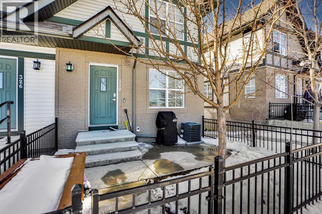Welcome to one of the most desirable locations in Mosaic of Cranston — an end-unit townhome perfectly positioned facing the park, with no neighbours in front and a fabulous, private yard space to enjoy it all. Opportunities like this rarely come up, especially an end unit on the park.This beautifully maintained 2-storey home offers extra windows, added natural light, and enhanced privacy thanks to its end-unit placement. The cozy front yard creates the perfect setting for morning coffee or evening unwinding while overlooking peaceful green space.Inside, you’ll immediately notice the upgraded cork flooring that brings warmth and character throughout the main living areas, paired with granite countertops throughout the home. The open-concept layout is functional and inviting, ideal for both everyday living and entertaining.Upstairs features two spacious bedrooms — each with its own private ensuite — an incredibly desirable layout for professionals, roommates, small families, or guests. Both bedrooms offer generous space and comfort, creating a true dual-primary setup.The recently developed lower level adds impressive versatility, complete with an elongated, hardwired electric fireplace that creates a modern and cozy focal point. There’s even a cleverly designed hidden play area for the kids — a fun bonus space that makes this home truly unique.A full double car garage provides secure parking and extra storage — a major advantage in townhome living.And the location? Exceptional. Just a quick walk to Century Hall featuring a gym, skating rink, splash park, hockey rink and community events. Sobeys, restaurants, cafés, and everyday retail shops are all steps away. Plus, enjoy access to Cranston’s extensive ridge pathways with stunning Bow River valley views, along with endless bike and walking paths connecting to Fish Creek Park. Its so close to Seton you could walk to work at South Health Campus!Mosaic townhomes rarely come available — and an end unit backi ng onto the park is even more uncommon. If you’ve been waiting for something special in Cranston, this is your chance. Private. Bright. Rare. And perfectly located. (id:6769