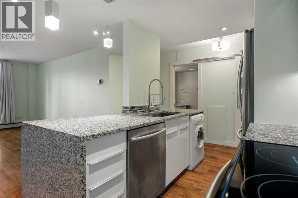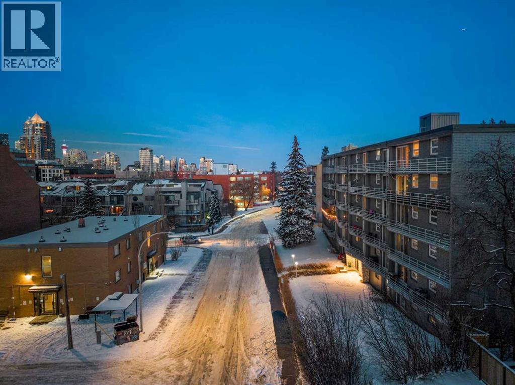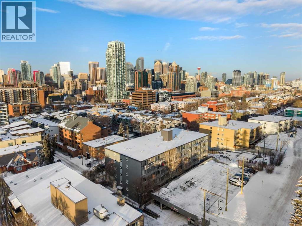 Located in the heart of Lower Mount Royal, this turn-key residence is the perfect live-in or rent-out investment as it has been gorgeously remodelled, is in a concrete building with low condo fees, showcases downtown views and is perfectly located just steps to the beltline! Step inside to your gorgeous renovation, as this unit has been exquisitely remodeled and promises to leave a lasting impression! From the moment you walk in, you will be captivated by the opulent finishes and premium selections offered in this home. The lavish renovation is inclusive of everything: new engineered hardwood, trim, doors, paint, hardware, potlights, light fixtures, appliances and of course you will love the luxurious details in the brand-new kitchen and bathroom! The gourmet kitchen is striking now that it has been opened up from its original closed off design and features timeless white cabinets elevated with transom details. The kitchen showcases granite countertops featuring a lavish waterfall edge, professional appliances, designer lighting – and a rare perk for a condo in this complex – in suite laundry! The European style washer/dryer is a coveted feature – as most units in the complex have to use the shared laundry room where you pay per use. The island is the perfect space for entertaining or cooking and opens onto an intimate dining area – they don’t make condos this spacious anymore! Your expansive family room is so impressive, and it has enough space to accommodate an in-home office too, plus it is adorned with natural light from the floor to ceiling patio windows that accesses your beautiful balcony facing downtown. Yes, the view is included as many units in this price range face a parking lot! Your primary retreat can fit a king-sized bed and sits adjacent to your re-designed four-piece bath featuring an extended vanity and granite countertops. Please note that the unit has a front hall closet, ample bedroom closet, linen closet, and a storage room RIGHT beside the uni t door. This unit is located in Churchill towers which is a well-maintained concrete building with a healthy reserve fund and recent building renovations (new elevator 2010, boilers 2015, renovated lobby 2012, & a security system). This location is within steps of Urban Fare (groceries), Goodlife Fitness, 17th Avenue restaurants/shopping, Canadian Tire, Shoppers Drug Mart, Stampede, Saddledome and the parks and paths surrounding elbow river. A perfect investment property that can be a part of this buildings managed rental pool so you can sit back and have someone take care of the tenants for you. There is street parking around and outdoor stalls available for rent (it is a waitlist system). This residence offers exceptional value – book your private viewing today! (id:6769