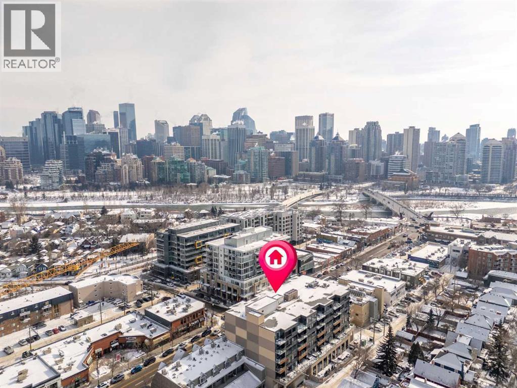Welcome to urban living at its finest in The Kensington, ideally located in the vibrant community of Hillhurst. This beautifully appointed 1-bedroom, 1-bathroom unit showcases modern finishes and an open-concept layout designed for both comfort and functionality. The stunning U-shaped kitchen features high-gloss cabinetry, excellent counter space, a built-in wine rack, and premium stainless steel Bosch appliances, including a gas stove, perfect for those who love to cook and entertain. The kitchen seamlessly opens to the bright living/dining area, offering flexibility for adding a home office setup or a sunny reading nook. Step outside to your spacious private south facing balcony, complete with a convenient BBQ gas line, ideal for entertaining or relaxing evenings at home. The generous primary bedroom offers a large walk-through closet with thoughtfully designed shelving for maximum organization and direct access to the elegant 4-piece bathroom. Enjoy luxury touches including a deep soaker tub, glass surround stand up shower, large vanity with ample storage, built-in shelving, and a cheater door providing convenient access from the main living space. Additional highlights include a dedicated laundry room near the entrance with side by side washer and dryer with extra storage space and an additional front closet area. Central air conditioning ensures year round comfort and this unit also comes with one TITLED underground parking stall and an assigned storage locker, an added bonus that is priceless with condo living. Additionally the building also offers a residents car wash and bike storage! Residents will love the unbeatable location with retail amenities right on the main floor, including Orange Theory Fitness and a café, plus just a 5-minute walk to Sunnyside LRT station. Enjoy quick access to the Bow River pathways, downtown core, and the countless shops and restaurants that make Kensington one of Calgary’s most sought-after neighbourhoods. This is a rare oppor tunity to own a sophisticated home that perfectly blends luxury, convenience, and that unbeatable inner city lifestyle. (id:6769