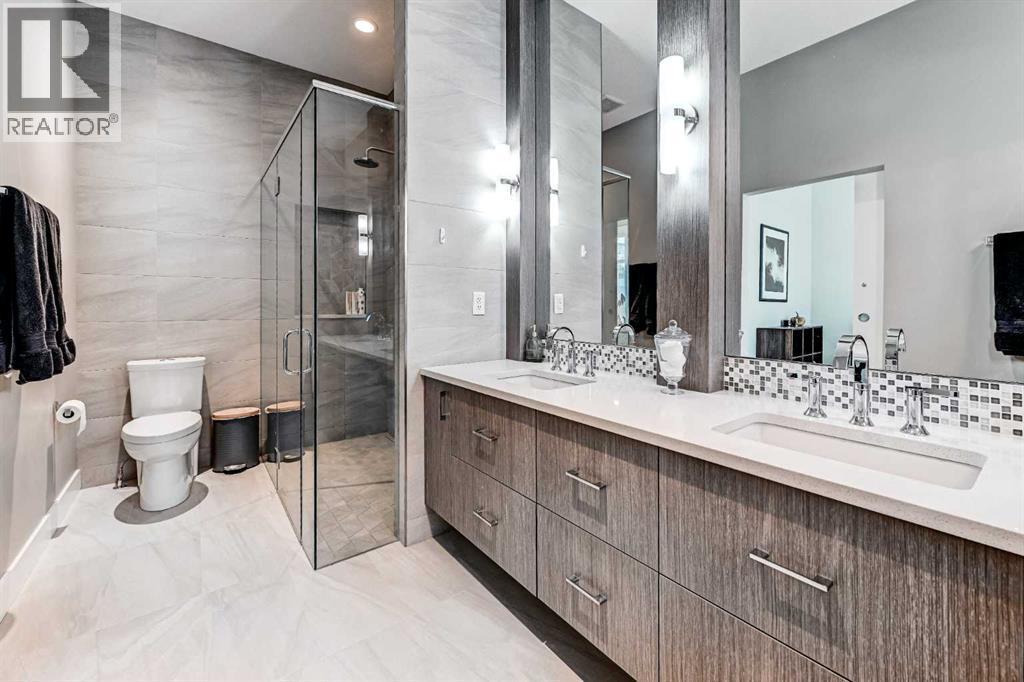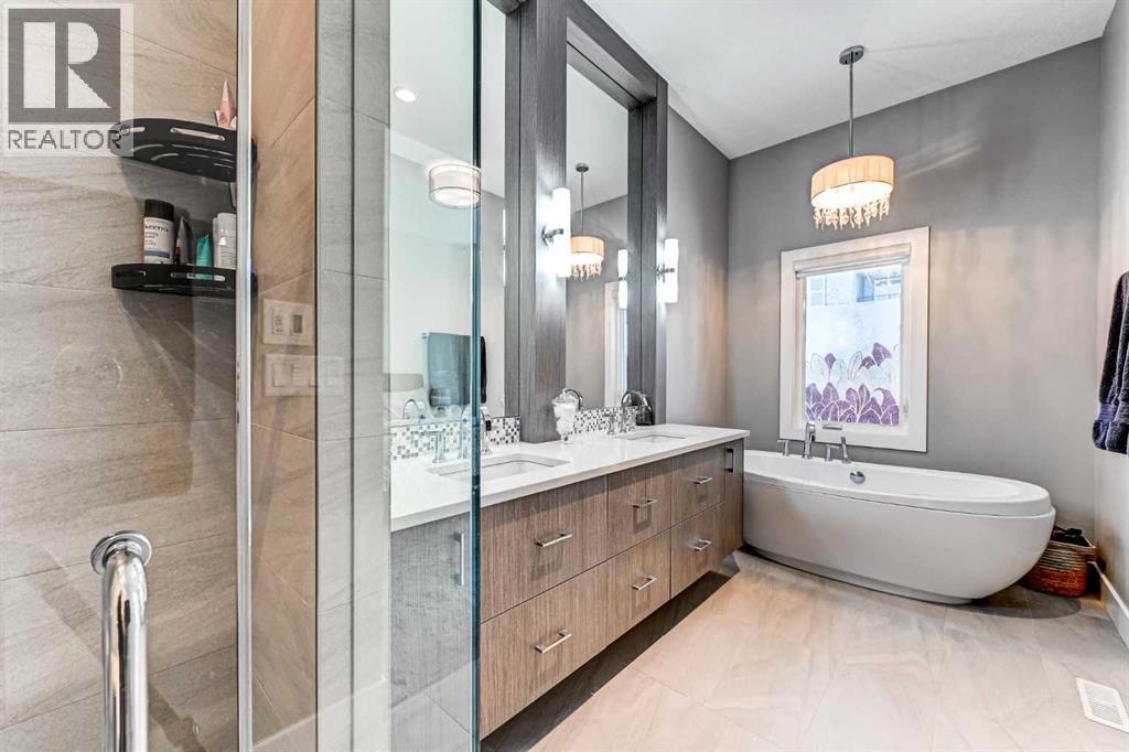 Spacious, very well-maintained semi-detached infill offering over 2,600 sq ft of beautifully developed living space in the heart of Currie Barracks — a true hidden gem. Ideally situated in The Commons of Currie, this home places green space, picturesque streetscapes, parks, and recreation just outside your door. Thoughtfully designed with a functional floor plan and quality upgrades throughout, it seamlessly blends comfort and style. The main floor impresses with 10-foot ceilings and a stunning raised living room anchored by a floor-to-ceiling tiled gas fireplace. Expansive windows fill the space with natural light, while the layout offers flexibility for multiple work-from-home setups. The modern kitchen showcases striking two-tone custom cabinetry with soft-close hardware, a built-in pantry, and a premium stainless steel appliance package — including a refrigerator, slide-in gas range, built-in hood fan, microwave, and dishwasher. A central island invites gathering, while a built-in desk provides the perfect homework station or additional workspace.Upstairs, the primary retreat offers generous proportions and a serene ambiance, highlighted by grand east-facing windows and a custom walk-in closet complete with built-in shelving, drawers, and cabinetry. The spa-inspired ensuite features heated tile floors, a contemporary dual vanity with abundant storage, a curb-less glass shower with full-height tile, and a freestanding soaker tub — creating the ultimate space to unwind. The fully developed basement continues the home’s spacious feel with 10-foot ceilings, a custom media wall, and a full wet bar with built-in cabinetry, sink, and bar fridge — ideal for entertaining. Outside, enjoy a private fenced yard with a patio and detached garage, offering both comfort and convenience. Additional highlights include Built-in air conditioning, High-efficiency furnace with humidifier, 75-gallon hot water tank, Rough-in for radiant in-floor heating in the basement, Central vacuum system and Security system. Currie Barracks is a dynamic, award-winning master-planned community known for its pedestrian-friendly streets, urban gardens, and beautifully connected pathways. Residents enjoy nearby amenities including The Inn on Officers’ Garden — home to dining, craft beverages, a café, and local favorites — along with convenient access to Glamorgan Shopping Centre (Glamorgan bakery), Marda Loop, and Mount Royal University. Downtown Calgary is just minutes away, making this location as practical as it is prestigious. With nearby parks, including Currie Bark Park and Airplane Park, plus proximity to top schools, this exceptional home offers an unmatched lifestyle in one of Calgary’s most sought-after communities. (id:6769