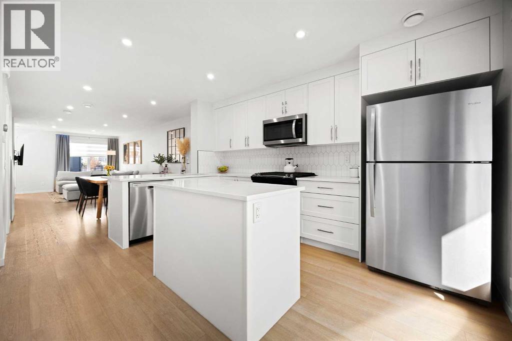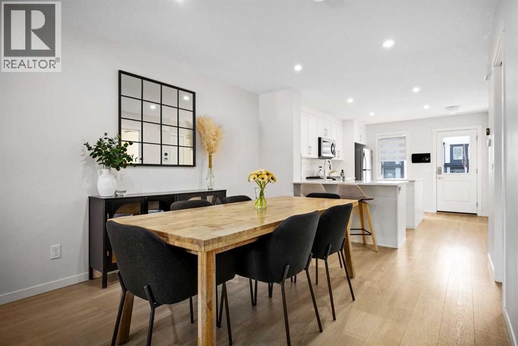 Welcome to this stunning 2023-built townhome in the vibrant community of Seton, offering modern design, thoughtful upgrades, and incredible rooftop views. As you step inside, you’re greeted by a bright open-concept main floor where the living, dining, and kitchen areas flow seamlessly together. Large windows flood the space with natural light, creating a warm and inviting atmosphere. The beautifully upgraded kitchen features stylish cabinetry, upgraded appliances, and a contemporary backsplash that ties the space together perfectly for both everyday living and entertaining. Knockdown ceilings and pot lights add to the fresh, modern feel, making this home truly feel brand new. From the main level, step outside to your fully fenced backyard complete with a shed—ideal for pets, kids, or BBQing on hot summer evenings.On the second level, you’ll find a spacious primary bedroom highlighted by a stunning feature wall and a private 3-piece ensuite. A generously sized second bedroom includes a convenient Murphy bed, creating flexibility for guests, a home office, or both. An additional 4-piece bathroom and laundry closet completes this level. The third floor offers an impressive and versatile family space that can function as a bonus room, media room, home gym, or entertaining lounge. Complete with a wet bar and mini fridge, it’s perfectly set up for hosting friends and family. Step out onto the incredible rooftop deck where you can soak up sun all day long while enjoying expansive views stretching to the mountains and beyond. Additional features include central air conditioning, high-end zebra blinds and curtains, upgraded carpet, luxury vinyl plank flooring throughout, low condo fees, and a fantastic location just steps from the HOA and its amenities.Living in Seton means enjoying one of Calgary’s most dynamic and amenity-rich communities. Residents have access to the impressive Brookfield Residential YMCA at Seton, one of the largest YMCA facilities in North America, as well as the nearby South Health Campus. The community offers a growing urban district filled with shops, restaurants, entertainment options including a VIP Cineplex theatre, grocery stores, cafés, parks, pathways, and convenient access to major roadways. Seton truly delivers the perfect blend of urban convenience and connected community living—and this exceptional townhome allows you to experience it all in style. (id:6769