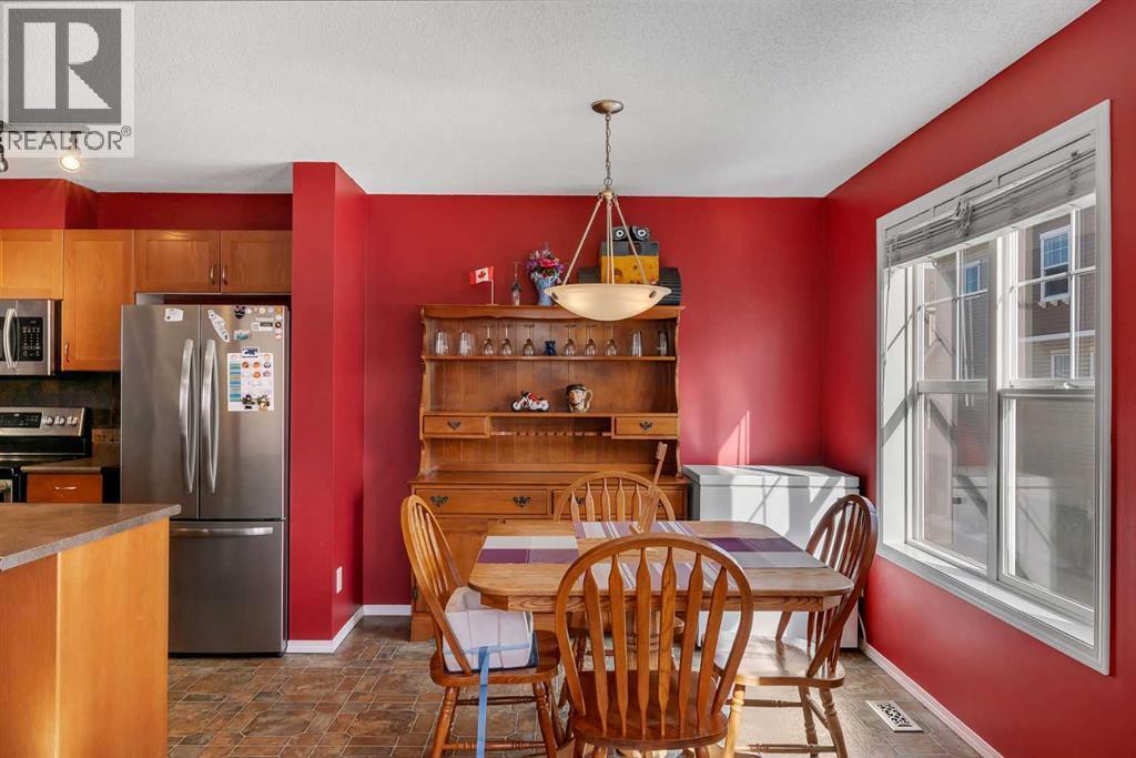 Welcome to 320 Elgin Gardens SE, a beautifully maintained 3-bedroom end unit located in the highly sought-after community of McKenzie Towne. This bright and spacious home offers a unique and functional layout designed for both comfort and entertaining. Upon entering, you are greeted by a stunning sunken living room with soaring 14-foot ceilings, creating an open yet private space to relax. Large, oversized windows allow natural light to pour in, making the space feel warm and inviting while still maintaining separation and privacy from the other living areas. Just a few steps up, the open-concept kitchen overlooks the living room, allowing for easy conversation and connection with guests or family below. The kitchen features a centre island with an eating bar, ample cabinet and cupboard space, and flows seamlessly into the dining area and convenient office nook. A 2-piece bathroom completes this level. The upper floor offers three well-sized bedrooms, including a comfortable primary retreat with a large walk-in closet. A bright 4-piece bathroom serves the upper level. The basement provides plenty of storage space, laundry, and direct access to your double attached garage, adding everyday convenience. Additional highlights include end-unit privacy, a hot water tank replacement shortly after August 2021, and a location that truly can’t be beat. Situated just steps from shopping, schools, parks, public transit, and all the amenities McKenzie Towne has to offer. (id:6769