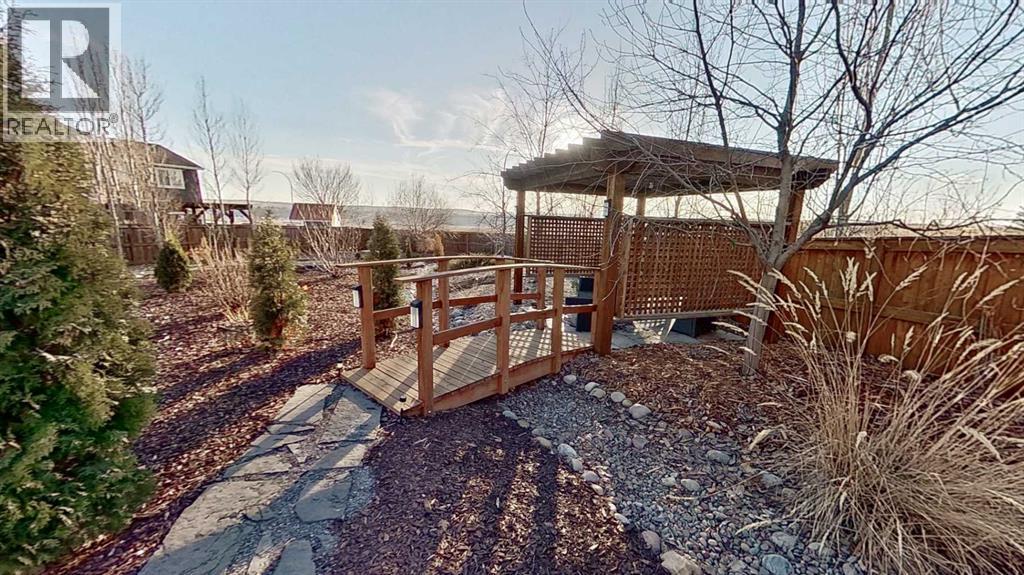 Exceptional home on one of the largest lots in Cranston, offering a rare pie-shaped, south-facing, professionally landscaped backyard on a quiet cul-de-sac. The outdoor space is truly unique, featuring a covered upper deck with awning, stone stairs leading to a gated backyard exit, a pergola, and two charming bridges connecting the yard-perfect for relaxing or entertaining. A fully developed walkout basement completes the seamless indoor–outdoor living experience. The open-concept main floor showcases a striking floor-to-ceiling tiled electric fireplace, a dedicated main-floor office, and a convenient walk-through pantry, ideal for modern living. Upstairs, the spacious primary retreat includes a luxurious ensuite with his-and-hers sinks, a vanity area, a walk-in closet, and a private coffee bar. A large bonus room, two oversized bedrooms-each with walk-in closets, and a generous laundry room complete the upper level. The walkout basement offers outstanding versatility with two additional bedrooms, a full bathroom (10 mm glass shower) with heated tile floors, a large living area, and a wet bar with heated tile flooring, all with direct access to the backyard. Located in the highly sought-after community of Cranston, known for its family-friendly atmosphere, excellent schools, parks and pathway systems, proximity to Fish Creek Park and the Bow River, and easy access to Seton Urban District, South Health Campus, and major commuter routes (3 min walk to the bus stop). (id:6769