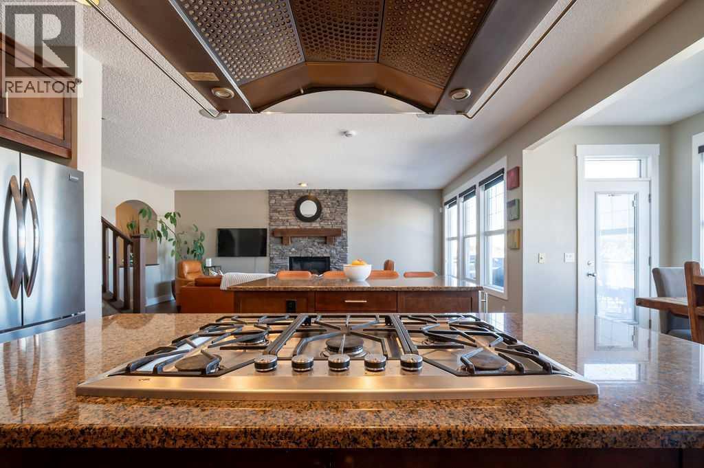 .Welcome to elevated family living in beautiful Chaparral Valley, Enjoy your morning coffee with the morning sunshine and stunning views of Blue Devil Golf Course, Valley and surrounding nature. This 4-bedroom, 3.5-bath home was designed for both luxury and everyday family life. The open-concept main floor features a custom chef’s kitchen with double islands, granite countertops, upgraded stainless steel appliances, and a built-in oven, convection microwave and beverage fridge — perfect for entertaining or busy mornings with the kids. The spacious dining area and cozy family room with fireplace create a warm, inviting atmosphere. Upstairs offers two generous kids’ bedrooms, a large laundry room with cabinetry, and a true primary retreat complete with a flex area, spa-inspired ensuite with soaker tub and steam shower, and a walk-in closet. The fully finished walkout basement adds even more living space with an additional bedroom, bright rec room with fireplace, flex space for a gym, and rough-ins for a future kitchen or bar. Enjoy your oversized deck with breathtaking morning sun, underground sprinklers, and a triple tandem garage with exceptional storage or perfect for developing the next hockey superstar. With recent exterior upgrades (new shingles & front stone work in 2022) and endless updates throughout, this is the perfect place to plant roots and call home. (id:6769