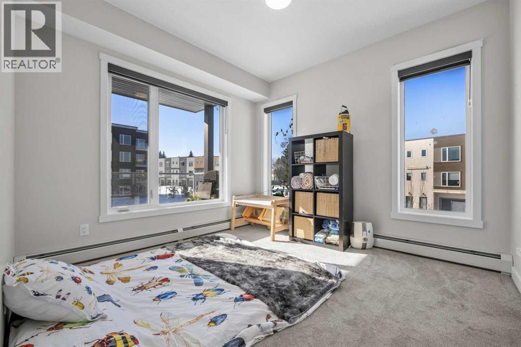 Welcome to contemporary living in the vibrant heart of Shawnee Slopes — a thoughtfully designed 3-bedroom, 2-bathroom condo that perfectly blends modern comfort with everyday convenience. Built in 2024, this bright and spacious unit features an open-concept layout that maximizes natural light and offers effortless flow from room to room. The stylish kitchen is appointed with sleek stainless-steel appliances, quartz countertops, subway tiled backsplash, kitchen island with seating, and abundant cabinetry — ideal for both everyday meals and entertaining. The generous dining and living area opens to a balcony where you’ll enjoy relaxing mornings or summer BBQs, while large windows fill the space with soft natural. Retreat to the spacious primary bedroom complete with a walk-through closet and a 4-piece ensuite with dual vanities. Two additional bedrooms offer flexibility for family, guests, or a dedicated home office, and a full guest bathroom provide comfortable accommodations for family or visitors. In-suite laundry, luxury vinyl plank flooring throughout with the cozy comforts of carpet in the bedrooms add to the home’s functional and modern appeal. Additional perks include a heated, secured underground parking stall and professional building management that ensures pristine common areas and peace of mind year-round. This exceptional community location places you within easy reach of Fish Creek Provincial Park’s pathways and outdoor recreation, excellent shopping, dining, transit options including the nearby LRT station, and all of life’s essentials — offering the ideal balance of urban convenience and natural serenity. Don’t miss your chance to own a modern, move-in ready home in one of southwest Calgary’s most family friendly neighbourhoods! (id:6769