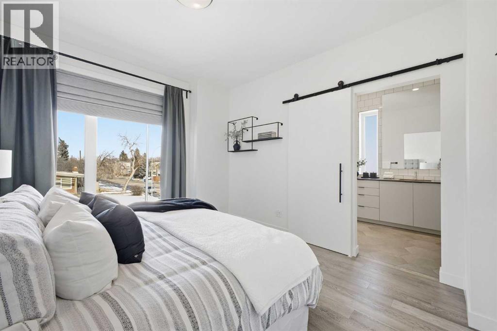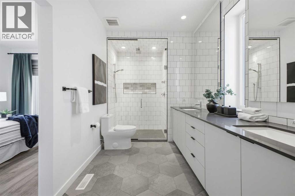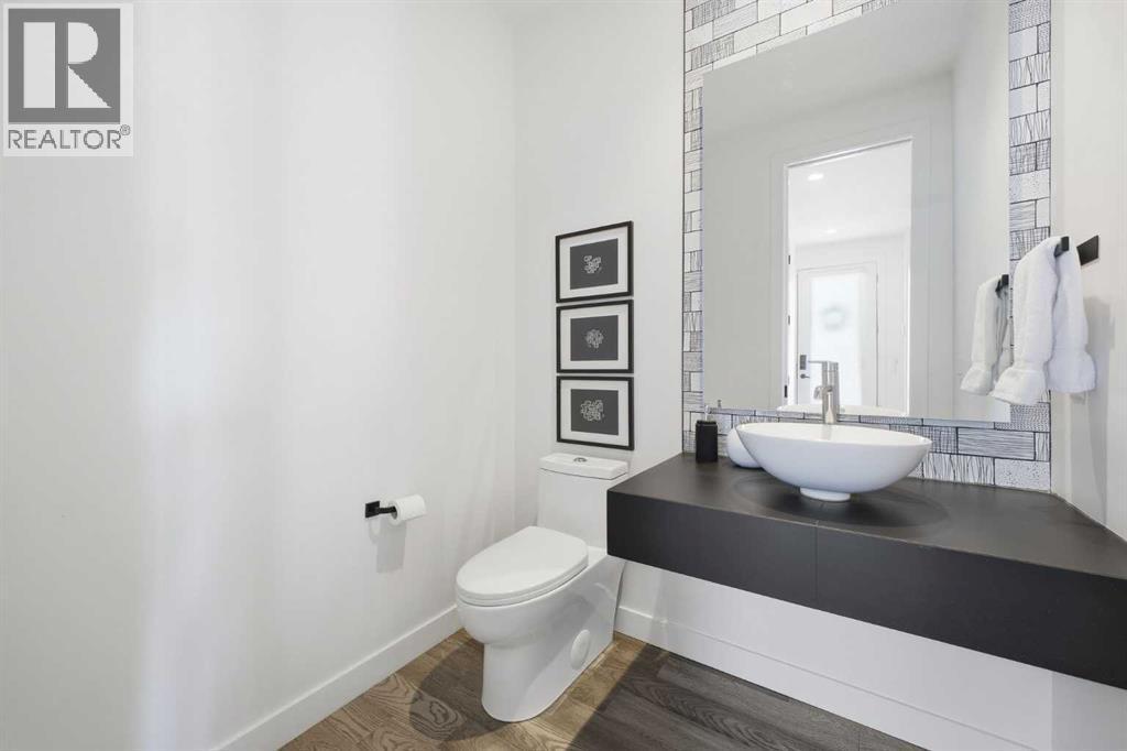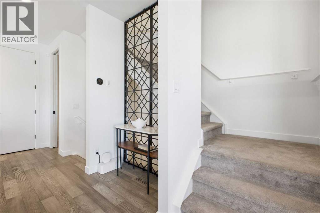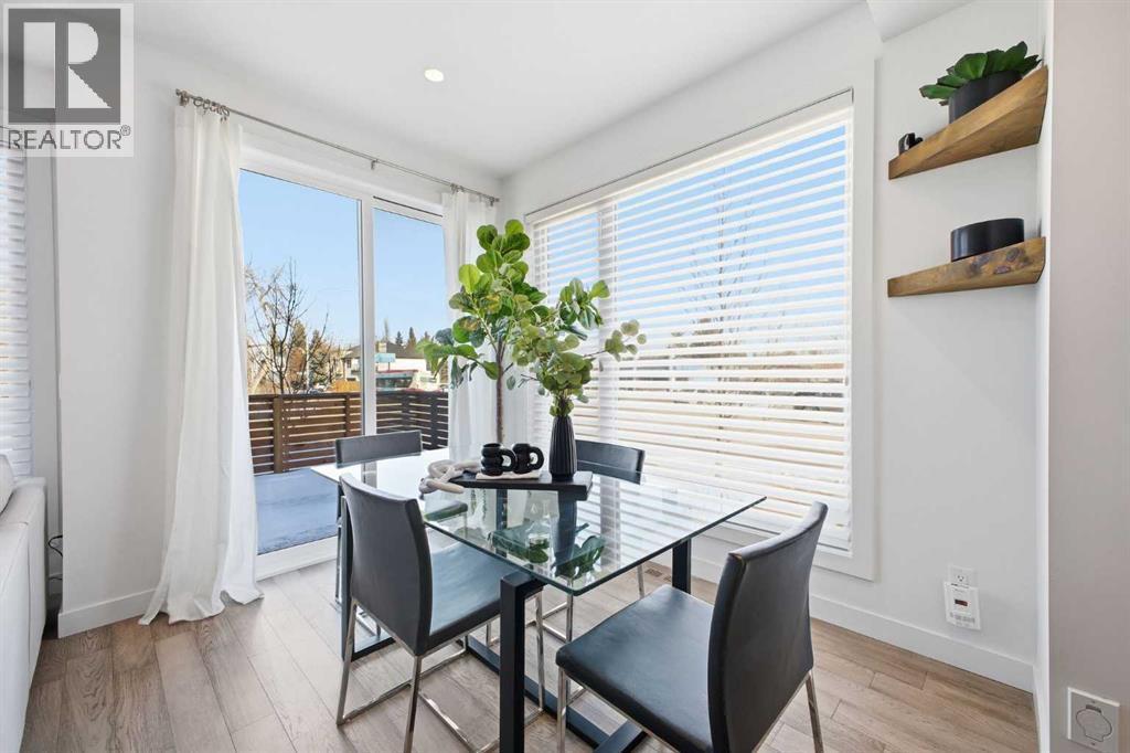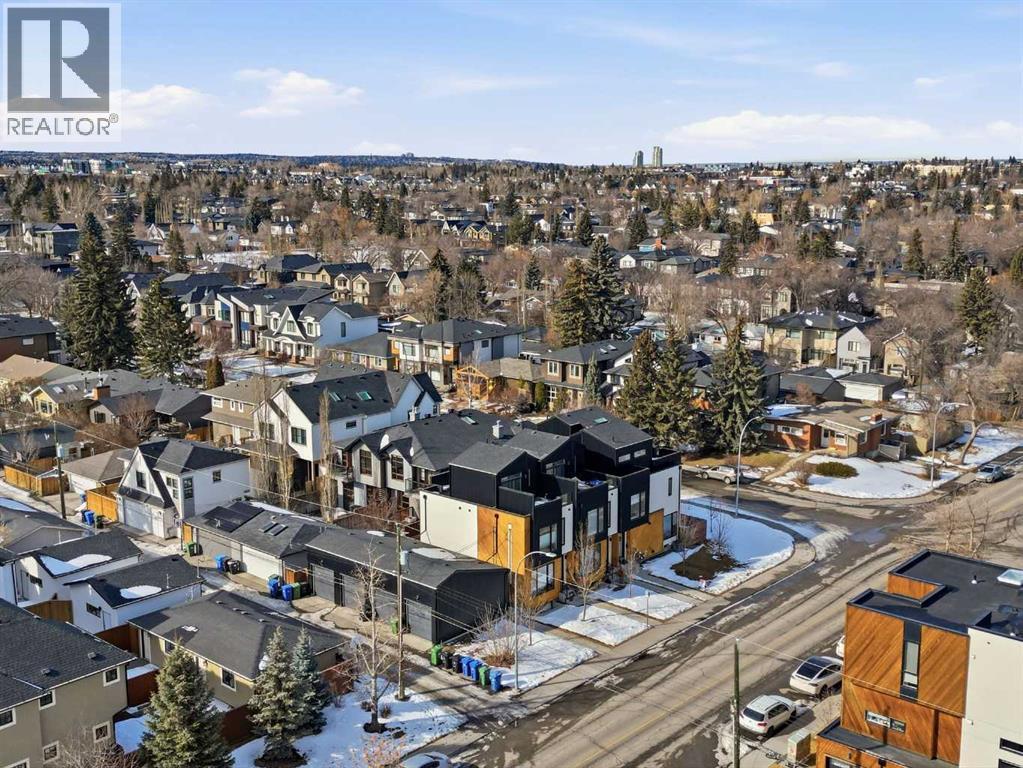 Welcome to this beautifully designed three storey END UNIT townhome in the heart of Altadore, offering nearly 2,200 sq ft of refined living space enhanced by thoughtful upgrades and custom finishes throughout. The open and airy main level features a bright, contemporary layout anchored by a chef’s kitchen with quartz countertops, a large island with eating bar, abundant cabinetry, and stainless steel appliances. The adjoining dining area opens onto the deck—an ideal setting for hosting family and friends—while the inviting living room with gas fireplace creates a warm, stylish space for everyday living and entertaining. The second level hosts two generously sized bedrooms, a well-appointed 4 piece bath, and convenient laundry. The private primary retreat includes a walk in closet and a secluded 4 piece ensuite with dual sinks and an oversized shower. The third floor loft, complete with a wet bar, offers exceptional flexibility as a media room, home office, studio, or lounge. From here, step out onto the private rooftop patio and enjoy sweeping views—an impressive extension of your living space. The fully finished basement adds even more versatility with a spacious recreation room, a third bedroom, and a full bathroom—perfect for guests or additional family needs. Outside, a large front patio provides another inviting spot to relax or entertain. Additional highlights include central air conditioning for year round comfort, heated bathroom floors throughout, and the convenience of a single detached garage. Set within one of Calgary’s most desirable inner city communities, this home is steps from parks, schools, shopping, and the vibrant amenities of Marda Loop, with quick access to downtown. This Altadore townhome blends modern design, custom craftsmanship, and urban convenience—an exceptional opportunity in a sought after location. (id:6769