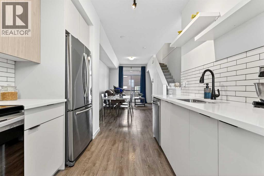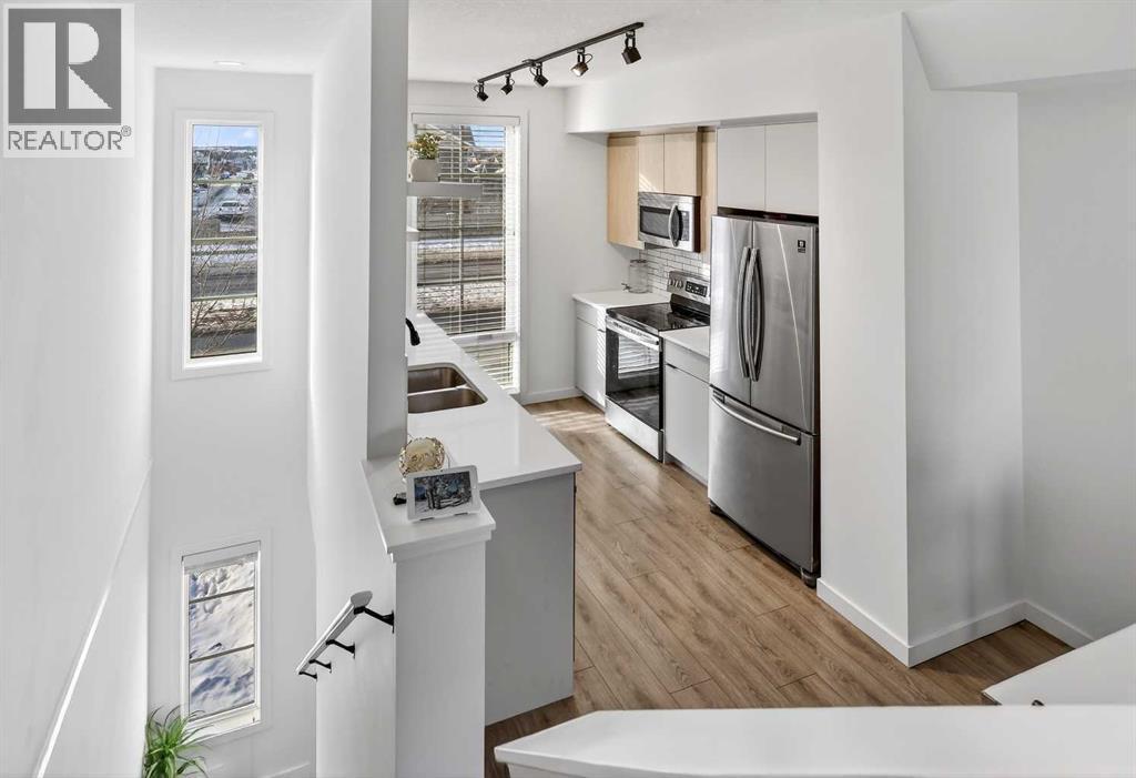 **OPEN HOUSE CANCELLED**Situated in a quiet location and proudly owned by the original owner, this beautifully maintained home offers a well-designed layout complemented by stylish modern finishes throughout. From the moment you step inside, you’ll appreciate the wood-grain laminate flooring and the functional flow that makes everyday living both comfortable and convenient. The contemporary kitchen is thoughtfully appointed with engineered stone countertops, stainless steel appliances, and an abundance of cabinetry and counter space, making it ideal for both cooking and entertaining. It seamlessly connects to the spacious living area, which extends out to a covered balcony — the perfect setting to unwind or host guests year-round. The primary bedroom features a generous footprint and includes a private 3-piece ensuite. A well-sized second bedroom is positioned next to the 4-piece main bathroom, offering flexibility for guests, family, or a home office. Bathroom countertops are finished in durable laminate, and the home is complete with vinyl windows for efficiency and low maintenance. Additional highlights include a single attached garage. Ideally located within walking distance to a daycare, gym, and retail shops, and just steps from a soon-to-open K–9 school, this move-in ready property offers both lifestyle and convenience. Whether you’re a first-time buyer, downsizer, or investor, this is an exceptional opportunity you won’t want to miss. (id:6769