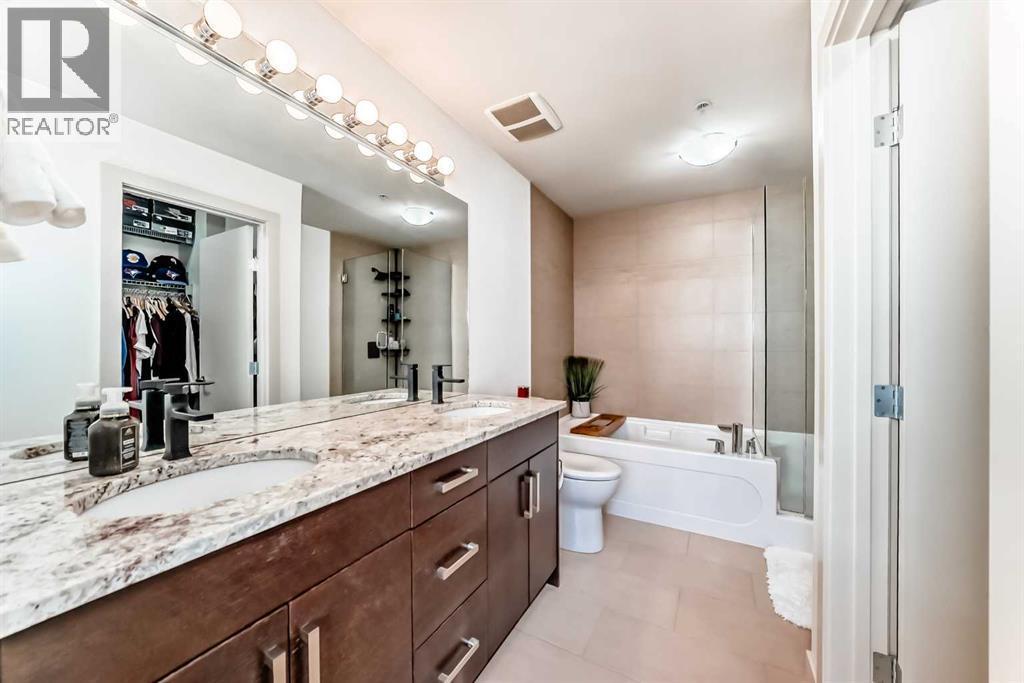 Stunning One Bedroom Condo at TWEED! This boutique executive residence building is a concrete and steel constructed complex on a quaint tree-lined street in Cliff Bungalow, boasting a brick/stucco exterior, two elevators and professionally designed common areas. The open concept interior of this unit impresses with stainless steel appliances, stylish granite countertops, a tiled backsplash and contemporary flat panel cabinetry. The bedroom is a serene space with large windows and a 5-piece ensuite. Additional elements include air conditioning, vinyl plank flooring, a 2-piece bathroom, a modern fireplace, in-suite laundry, and a beautiful window wall in the living room, a large balcony with a BBQ gas line. An incredibly convenient storage locker is included, separate from the suite on the 4th floor, an underground parking stall, a large balcony with a BBQ gas line. Cliff Bungalow is tucked between Mission and Lower Mount Royal; a mature neighbourhood, close to many desirable shops, trendy eateries, urban parks and a quick walk into Downtown. Book an appointment to view. (id:6769