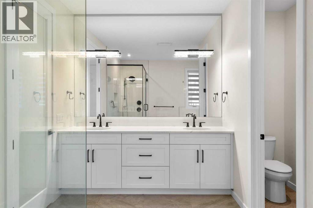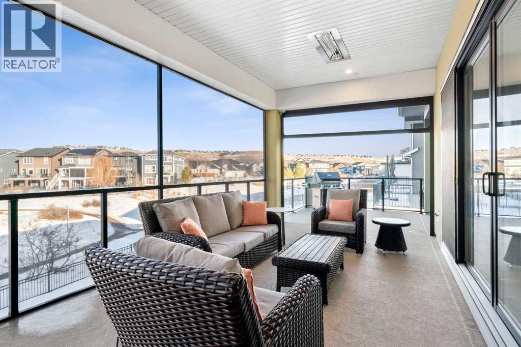 Experience an exceptional standard of living in this architecturally refined 2,973 sq. ft. executive residence. Perfectly positioned on a fully landscaped walkout lot backing directly onto a tranquil pond, the community pathway system, and a natural reserve, this home offers a serene setting with effortless access to the Bow River escarpment. Thoughtfully designed and executed without compromise by Baywest Homes the home delivers a rare blend of luxury, versatility, and income potential.From the moment you arive, the quality is immediately evident. Premium wide-plank engineered hardwood flooring spans both the main and upper levels, complemented by 9-foot ceilings and 8-foot doors throughout. The result is a cohesive, light-filled interior that feels both refined and expansive.The main floor is an entertainer’s showcase, anchored by a professional-grade kitchen and complemented by a private office and elegant powder room. Culinary highlights include a full-size double-door refrigerator and freezer, gas range with hood fan, built-in microwave, bar fridge, and LG dishwasher. A Kinetico K5 reverse-osmosis drinking water system feeds directly into the refrigerator dispenser, ensuring pure, filtered water at all times. Expansive windows flood the space with natural light while framing uninterrupted pond views.Step outside to the signature all-season Dura Deck, designed for year-round enjoyment. Glass railings preserve the view, while a sheltered breeze-in area with remote-controlled screens, two oversized infrared heating panels, and remote blinds creates a seamless indoor-outdoor living experience. Even functional elements have been thoughtfully addressed, with a custom outdoor metal storage enclosure discreetly housing waste bins to maintain the home’s clean, polished exterior aesthetic.The upper level is perfectly suited for modern family living. The expansive primary suite offers a true retreat, complete with a spa-inspired ensuite and oversized walk-in closet. S econdary bedrooms are equally impressive, including a rare junior suite with private ensuite and an exceptionally large third bedroom—ideal as a premium children’s retreat or flexible living space. A convenient upper-level LG laundry pair completes the floor.The professionally developed walkout basement functions as a fully self-contained legal suite, offering outstanding flexibility for extended family, executive guests, or a high-performing Airbnb. Featuring a private aggregate stone entrance, two bedrooms, a four-piece bathroom, comfortable sitting area with television, kitchenette (microwave, hot plate, fridge/freezer), stacked washer and dryer, and access to a large private patio, this space delivers privacy, comfort, and exceptional utility.Located just steps from the Bow River pathway system and surrounded by nature, yet only minutes from premier schools, shopping, and major commuter routes, this residence offers executive living without compromise. This is not simply a home—it is a lifestyle (id:6769