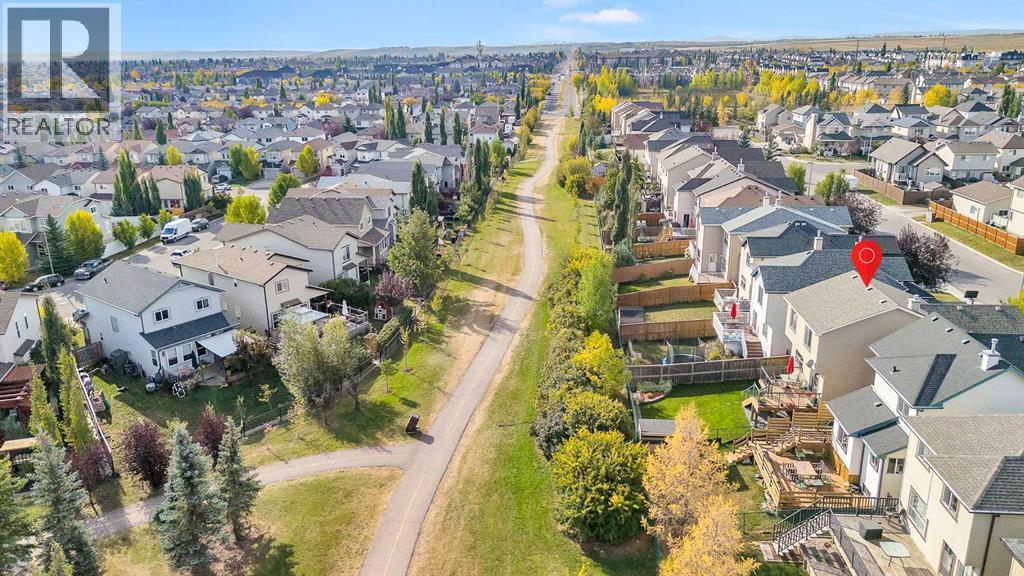 **Open House canceled** Elegantly upgraded 2-storey family home in Evergreen featuring 3 bedrooms, 2 full bathrooms. Exceptionally well-maintained one-owner home (never rented) on a quiet street with $75K in interior and exterior upgrades. Sunny and bright, move-in ready. This East/West-facing property offers over 1,600 sq. ft. of living space and backs directly onto GREEN SPACE and BIKE PATHS that lead to Fish Creek Park, perfect for families and nature lovers alike. Walking distance to three schools within the community ( Dr. Freda Miller School (K-5), Marshall Springs School ((6-9), Our Lady of the Evergreens (Catholic K-6). The main floor features open-concept design with fresh paint, large windows that fill the space with natural light, neutral tones, and luxury vinyl plank flooring throughout. The updated modern kitchen (2023) is the heart of the home, showcasing quartz countertops, wood cabinetry, a new tile backsplash, stainless steel appliances and a large island with seating. A corner pantry adds functionality, while the adjacent dining area flows seamlessly into a cozy living room highlighted by a gas fireplace with a custom wood mantel. Step out onto the east-facing composite deck with views of the greenspace/pathway. Enjoy your private, sunny fully-fenced backyard with mature trees and direct access to paths, perfect for everything from morning coffee to evening dining, watching your kids biking or dog walks. A full 4-piece bathroom adds convenience for guests or pet bath. Upstairs has brand NEW CARPET throughout -- you will find a spacious BONUS ROOM, perfect for a second living area, a home office, or a playroom, as well as three well-proportioned bedrooms. The primary suite includes large windows, a walk-in closet, and easy access to a full bathroom, creating a peaceful retreat. The large, unfinished basement with 2 big windows offers endless possibilities for future development. Additional upgrades include a new roof, garage door, siding, exterior paint, and windows screens that are under warranty. Explore nearby Fish Creek Park, walking paths, shopping (within a short drive, a variety of shopping options, such as Costco, Walmart and Superstore), recreation and quick access to Stoney Trail to go to the mountains or downtown. A commercial centre a short walk away that offers a convenience store, medical clinic and gas station. Families will appreciate the proximity to kids' playgrounds and additional shopping destinations like Sobey's and Shopper's Drug Mart, making this an ideal location for everyday living. Call to book your private viewing today. (id:6769