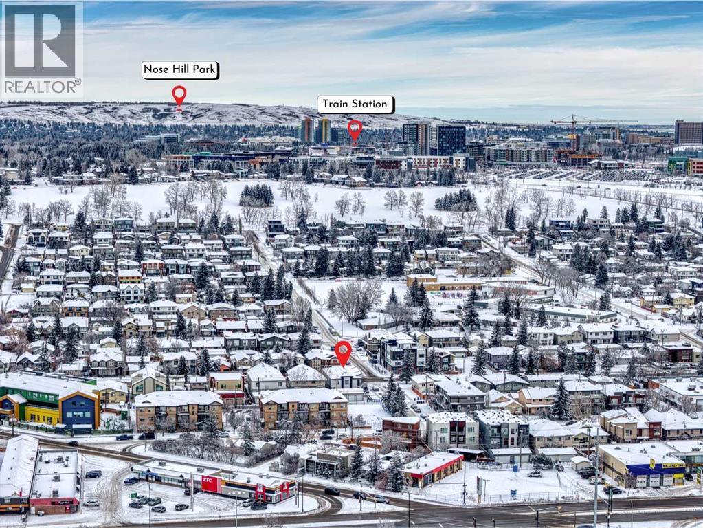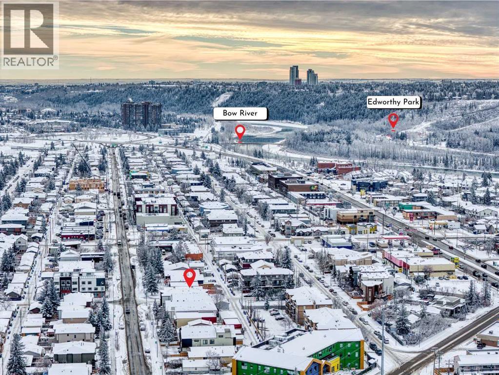 Well-designed townhome in Montgomery offering a great balance of space, light, and function. The open-concept main floor features a seamless flow between the living room, kitchen, and dining area. The living room has east-facing windows providing natural light throughout the day and a gas fireplace with built-in shelving and cabinets. The kitchen features a large island with an integrated sink, dishwasher, and drawers providing additional storage, offering ample prep and seating space for casual dining or entertaining. It comes with a stainless steel appliance package including a gas range and microwave hood fan. A convenient half bath completes the main floor. Upstairs are two bedrooms, each with its own ensuite bathroom. The primary bedroom features vaulted ceilings, a large window, and space for a desk or reading area. It is pre-wired for a wall-mounted television, and the adjacent private balcony provides a peaceful spot to enjoy the sunrise. The five-piece ensuite includes dual vanities with quartz countertops, a jetted soaking tub framed by tile, a glass and tile shower, and a skylight for added brightness. A walk-in closet connects directly from the ensuite. The second bedroom includes a walk-in closet accessed through its full four-piece ensuite. A stacked washer and dryer complete the upper floor. The finished basement adds a third bedroom, full bathroom, and generous storage with custom shelving under the stairs. The main floor, primary bedroom, and basement rec room are equipped with built-in speakers, each with independent volume controls. The home features central air conditioning installed in 2023 and a high-efficiency furnace. Outside, the front patio offers additional living space, while the backyard deck and gas hookup make it easy to set up a natural gas barbecue. One parking spot is assigned to the unit in one of the detached garage's spaces, with room for additional storage. With ample street parking available, the exterior visitor parking space has been converted into a dedicated area to store waste and recycling bins neatly away from the garage. Residents enjoy access to shared garden plots. This well-managed, self-administered condominium association maintains a healthy, fully funded reserve fund. Enjoy a convenient location with short walking access to Shouldice Athletic Park, the Bow River, and the Bow River Pathway. The home is also close to Edworthy Park and just a short walk from shops, restaurants, and cafés in University District, and Bowness Road. Quick access to Market Mall, Foothills & Alberta Children's Hospitals and the University of Calgary. (id:6769