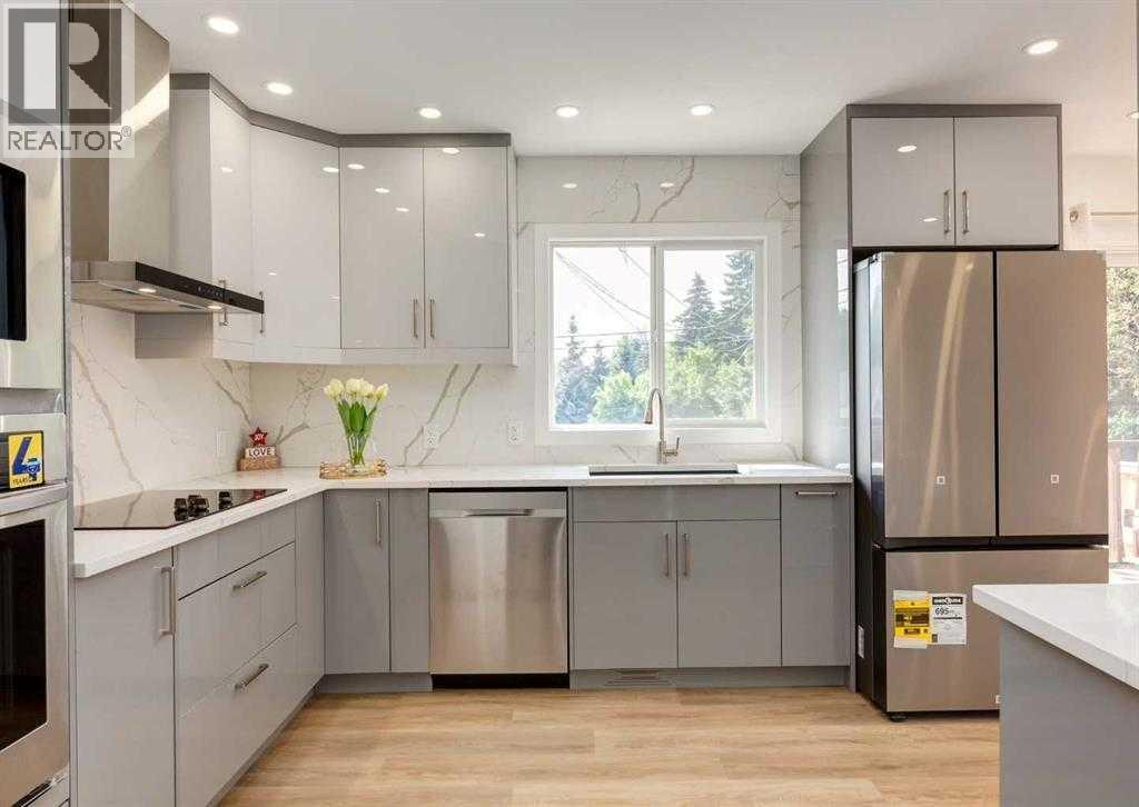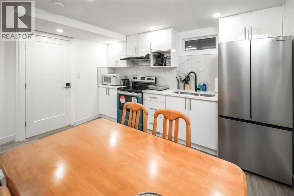 Fully renovated down to the studs, this beautifully updated 4-level split home is located in the highly desirable community of Brentwood, offering exceptional convenience within walking distance to the LRT station, steps from bus stops, and just minutes from the University of Calgary, Brentwood Village, and Nose Hill Park.The exterior has been extensively upgraded with brand-new stucco, newer shingles on both the house and the oversized double garage, new concrete steps and walkways, new fencing, new parking pads, and newly completed front and backyard landscaping. The basement level also features new legal egress windows.Inside, the home welcomes you with a bright open-concept living and dining area, complemented by a brand-new modern kitchen, new flooring throughout, flat ceilings, newer windows, and a new patio door that enhances both natural light and functionality.The upper level offers two spacious bedrooms and a fully renovated 3-piece bathroom.The lower level features a separate entrance and includes a comfortable primary bedroom with a beautifully finished 4-piece ensuite, along with a convenient 2-piece guest bathroom.The basement level has been thoughtfully redesigned to include a brand-new 3-piece bathroom, an additional bedroom, and a newly added kitchen area equipped with a stove, refrigerator, hood fan, and space for a microwave. A dedicated dining area completes the space, providing excellent flexibility for extended family living.Major upgrades include brand-new electrical and plumbing systems, a new washer and dryer, a new hot water tank, and a newer high-efficiency furnace.Move-in ready and extensively renovated, this home offers modern upgrades, flexible living space, and an unbeatable location in one of Calgary’s most sought-after communities. A rare opportunity at this price point. (id:6769