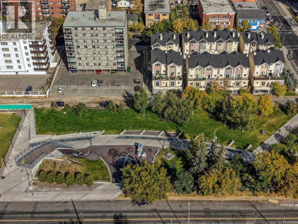 Welcome to Copper Castle — a bold, unique, and one-of a-kind complex in Calgary’s inner-city. Defined by its copper and brick exterior. This distinctive industrial-modern design is far from your typical townhouse. Quietly tucked between the vibrant 17th Avenue and the prestigious community of Upper Mount Royal this location is truly unmatched. Offering over 1,300 sqft of bungalow-style living, this unit delivers all the modern upgrades in the comfort of single-level living.Inside, an spacious open floor plan. Large triple-pane windows face the front of the unit. The living room is anchored by a modern two-sided gas fireplace, creating warmth and comfort. The generous size dining room flows seamlessly into the contemporary galley kitchen - featuring white shaker cabinetry, stainless steel KitchenAid appliances, subway tile backsplash, and marble-granite countertops. Through the kitchen is your walk-in pantry and your main-floor laundry room.Both bedrooms are generously sized. The primary features a walk-in closet and a fully tiled 4-piece ensuite, complete with a shower and freestanding soaker tub.A separate stairwell leads directly to your oversized garage (with driveway), providing exceptional storage and parking flexibility. At the rear of the garage — a recently updated flex space that creates the perfect setup for a home office, gym, or creative studio. Additional storage space is found in the utility room. This home is also equipped with central AC and a newer hot water tank (2021). Whether you're looking to downsize or if you are buying your first home, this home is one you won’t want to miss. Book your showing today! (id:6769