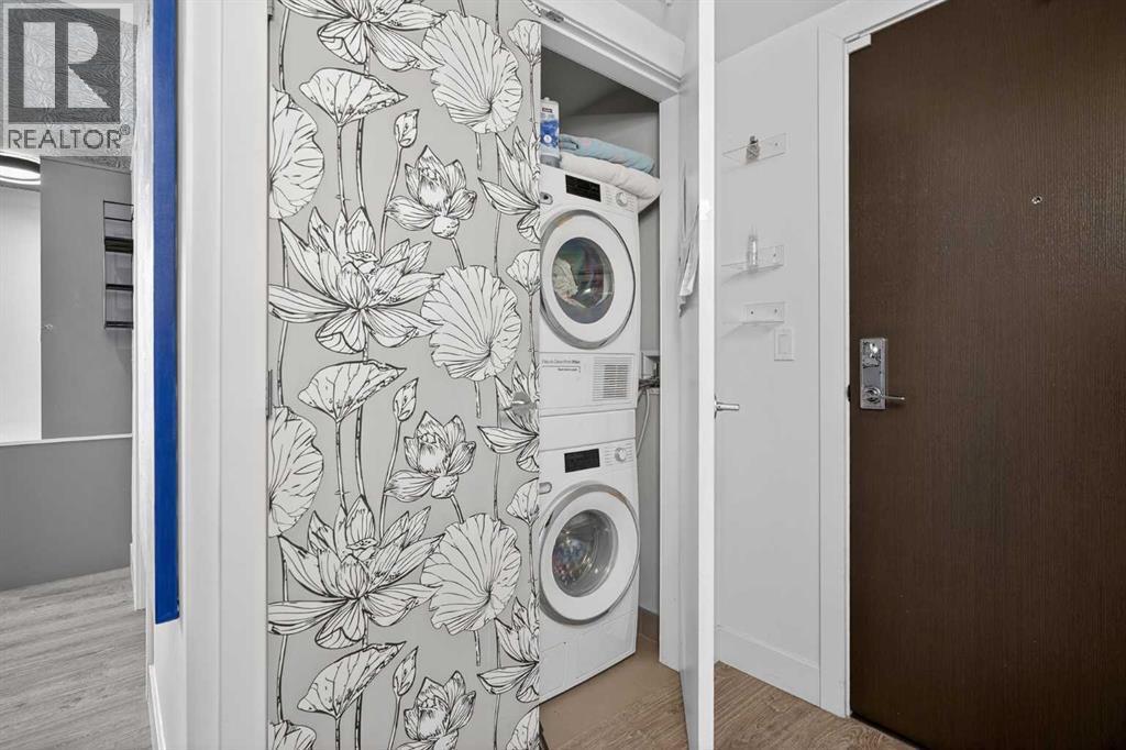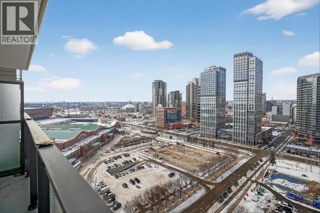 Welcome to the Gaurdian, South Tower. Truly one of Calgary's most sought after and spectacular buildings. This 2 bedroom, 2 bathroom home is unlike any other you have seen. Walking in you are greeted with gorgeous laminate floors, a white and gold feature wall and custom light fixtures. Entering into your open floor plan starts with your chef inspired kitchen with gold fixtures, custom built-in's in the cabinets and drawers, custom back splash, quartz counter tops and built-in stainless steel appliances. The large dining space is not something you normally find in a condo and is a great area to entertain or for quiet nights at home with the family. Your living room is a great size and offers you expansive VIEWS of DOWNTOWN, THE CALGARY TOWER, the MOUNTAINS, and connects to you west facing balcony. With this home being a corner unit you have amazing floor to ceiling windows offering views from every room. The primary bedroom is large enough for a king size bed as well as additional bedroom furniture and has a beautiful ensuite bathroom. The second bedroom is also a great size and has a custom MURPHY BED that was designed for the space and doubles as a home office. The second bathroom is custom designed and has a huge walk-in shower. The unit INCLUDES ALL TV'S AND MOUNTS as well as 2 TITLED SIDE BY SIDE UNDERGROUND PARKING SPACES!!!!! The Gaurdian has great amenities including a massive gym, social room, garden terrace, workshop, and is steps from the stampede grounds, great restaurants, shopping, bus and train routes giving you the best of downtown living. Do not miss out on your opportunity to own the most unique home in one of Calgary's most desired luxury buildings. (id:6769