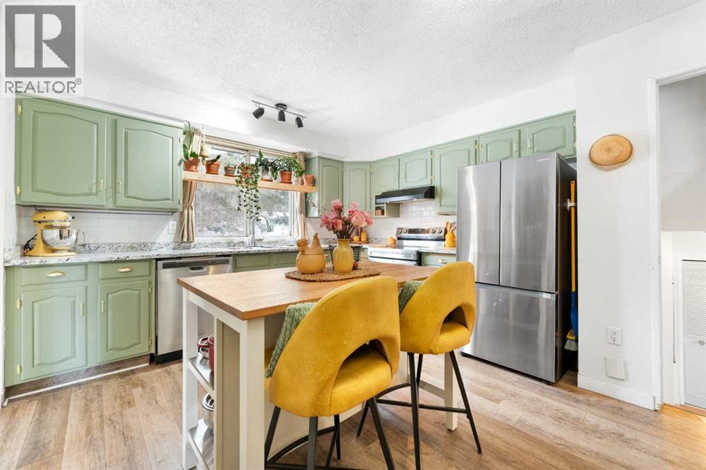 Well-maintained 4-level split on a 57 ft x 110 ft lot in the desirable community of Canyon Meadows, just minutes from Fish Creek Park and nearby walking paths. The main floor features a spacious living room, formal dining area, and a charming country-style kitchen, movable island, and luxury vinyl plank flooring. Upstairs offers 3 bedrooms including a primary with 2-piece ensuite and shared 5-piece bathroom. The lower level includes a large family room with wood-burning fireplace, a bright 4th bedroom, and an additional 2-piece bath. The basement is partially finished with excellent storage and future development potential. The south-facing backyard is a standout, featuring a large deck and plenty of space to relax or entertain. Ideally located close to parks, the LRT, shopping, and a variety of nearby schools including Spanish bilingual, French immersion, and Dr. E.P. Scarlett High School with its well-known AP program. A fantastic opportunity to enjoy an established community with nature, amenities, and great schools all close at hand. (id:6769